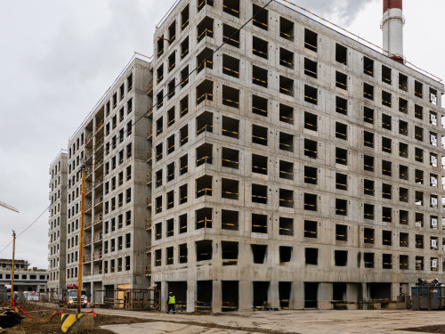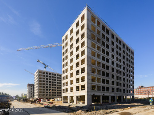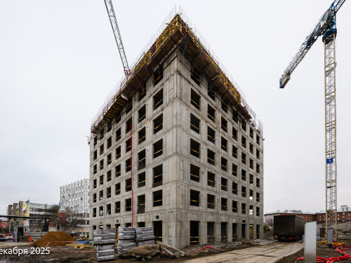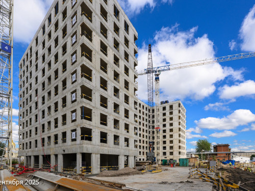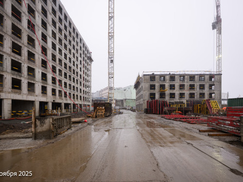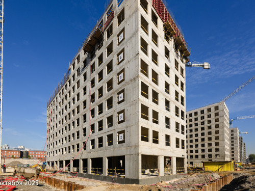 - В корпусе 6 работы по устройству монолитных стен и перекрытий на уровне 9 и 10 этажей.