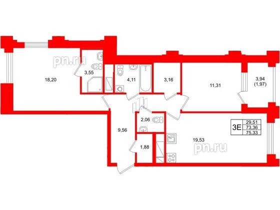Трехкомнатные квартиры (9 квартир, 9 планировок)