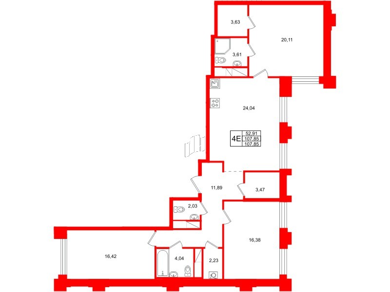 Квартир в клубном доме запланировано 907, часть из них идет с террасами. Высота потолка от 3 м, площадь жилья от 25 кв. м. до 110 кв.м. Квартиры предложены от студий до трехкомнатных вариантов.