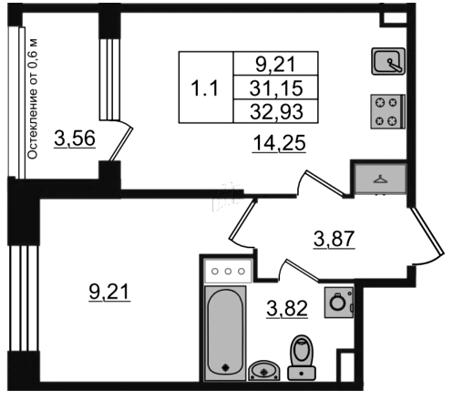 Однокомнатные квартиры (2 квартиры, 2 планировки)
