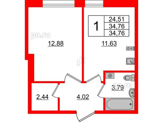 Однокомнатные апартаменты (3 апартаментов, 3 планировки)