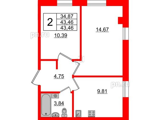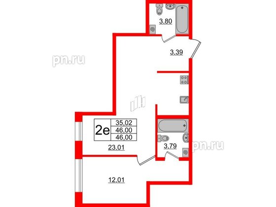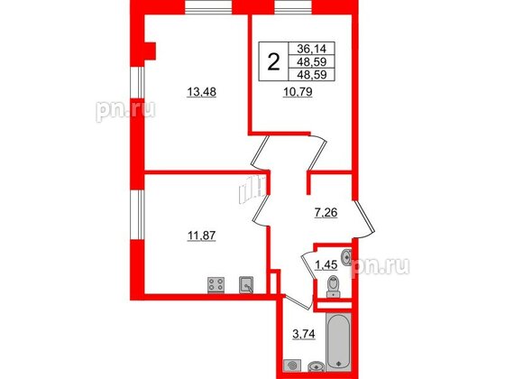Двухкомнатные апартаменты (3 апартаментов, 3 планировки)