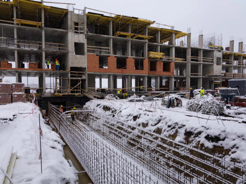 - Выполняли устройство монолитного железобетонного каркаса 5 и 6 этажей.