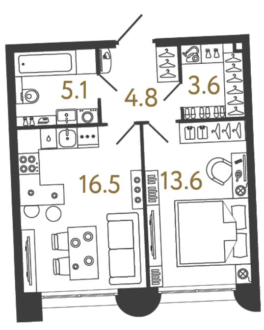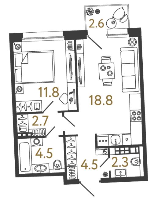 Однокомнатные квартиры (3 квартиры, 3 планировки)