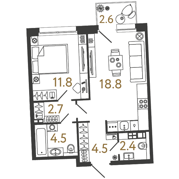 Студия (4 квартиры, 4 планировки)