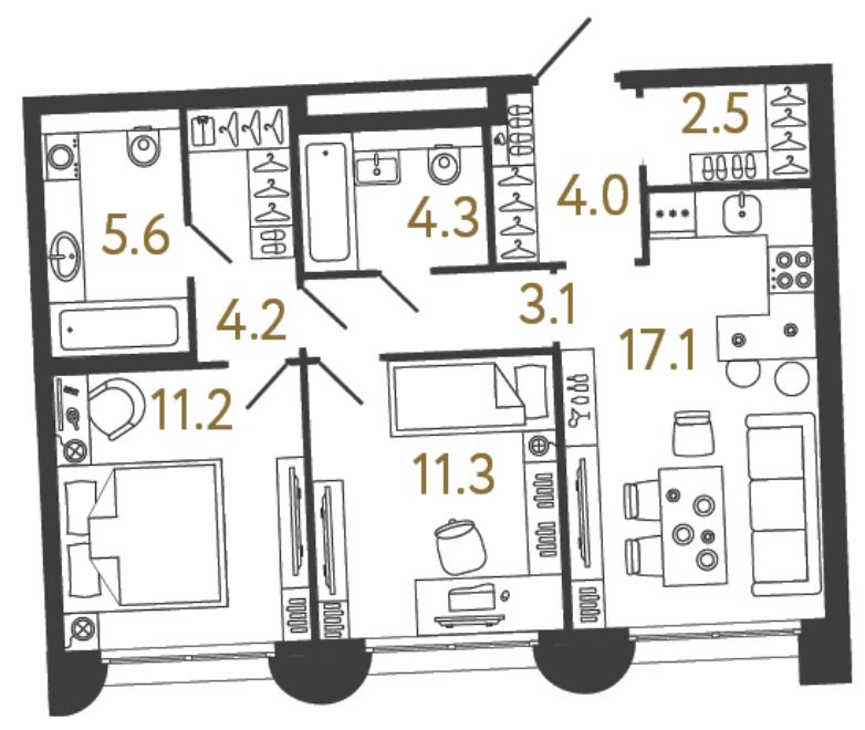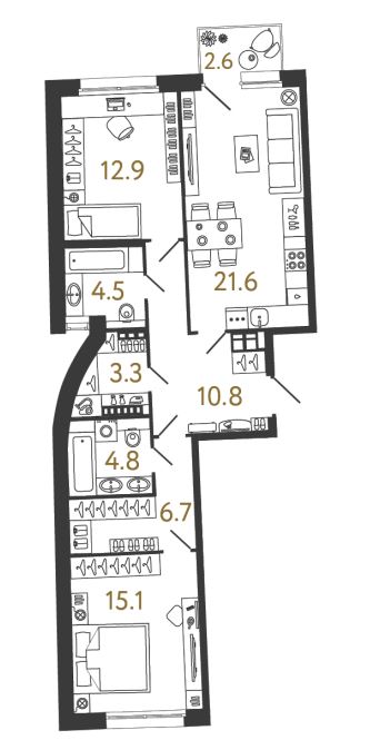 Двухкомнатные квартиры (3 квартиры, 3 планировки)