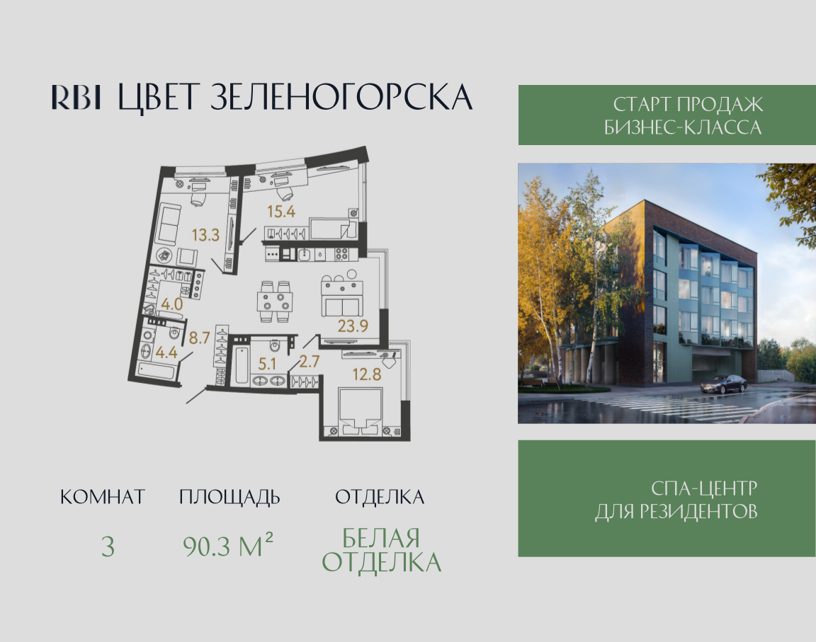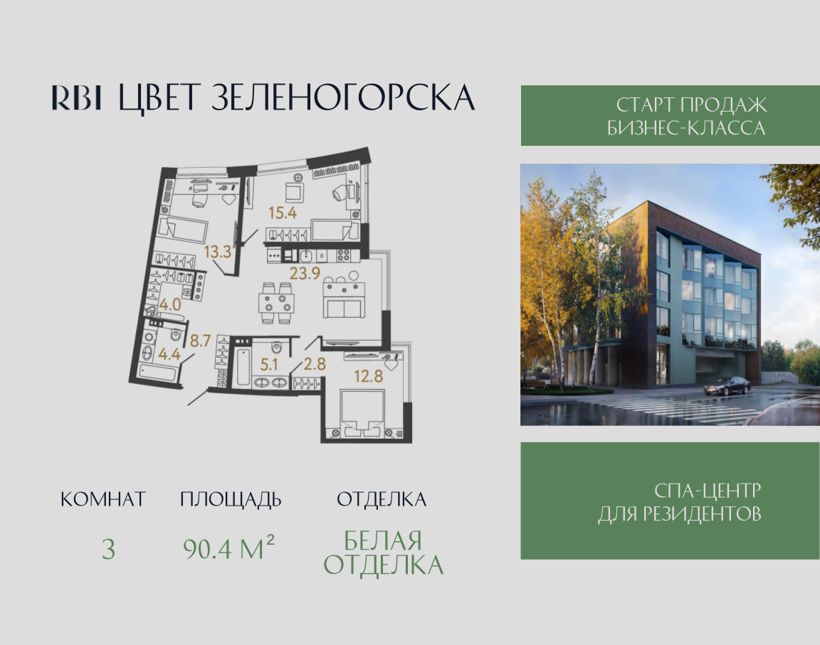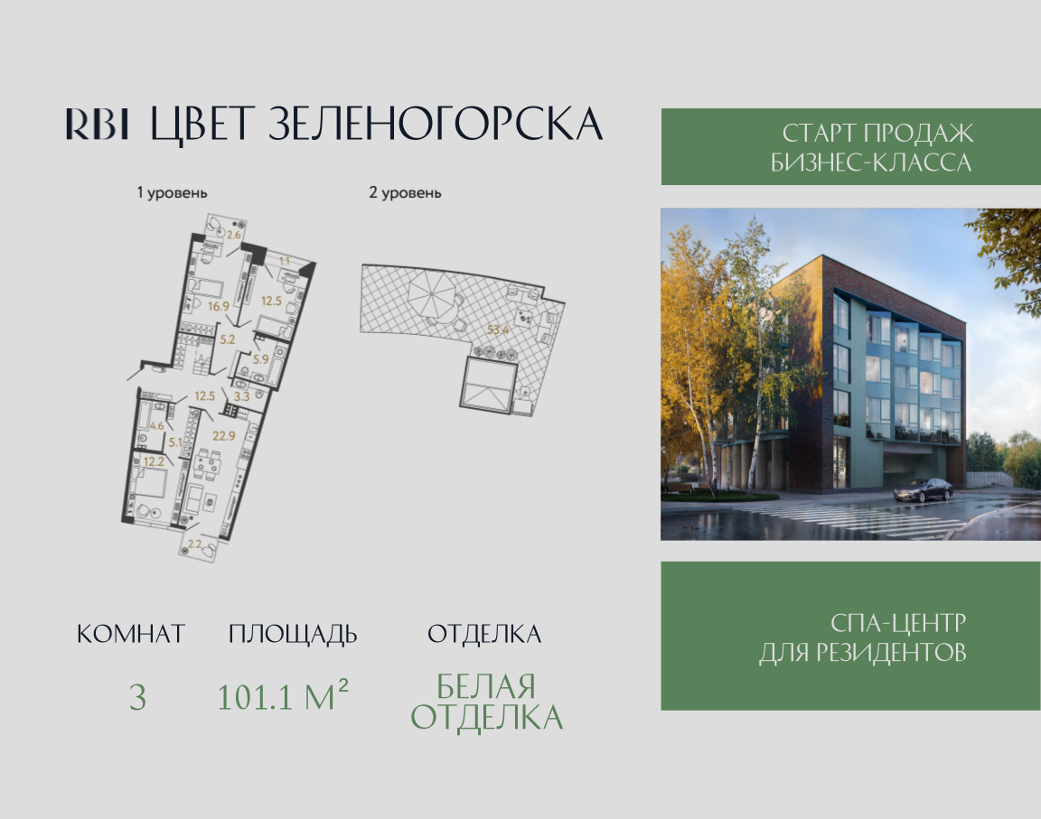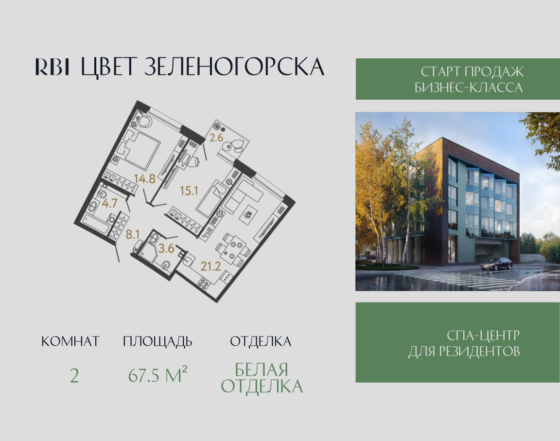 Дом "Цвет Зеленогорска" - проект от RBI на северном побережье Финского залива. Камерный дом бизнес-класса на 94 квартиры строится в Курортном районе Санкт-Петербурга в городе Зеленогорск.