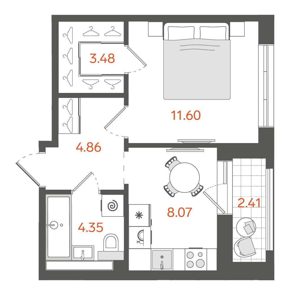 Однокомнатные квартиры (11 квартир, 11 планировок)