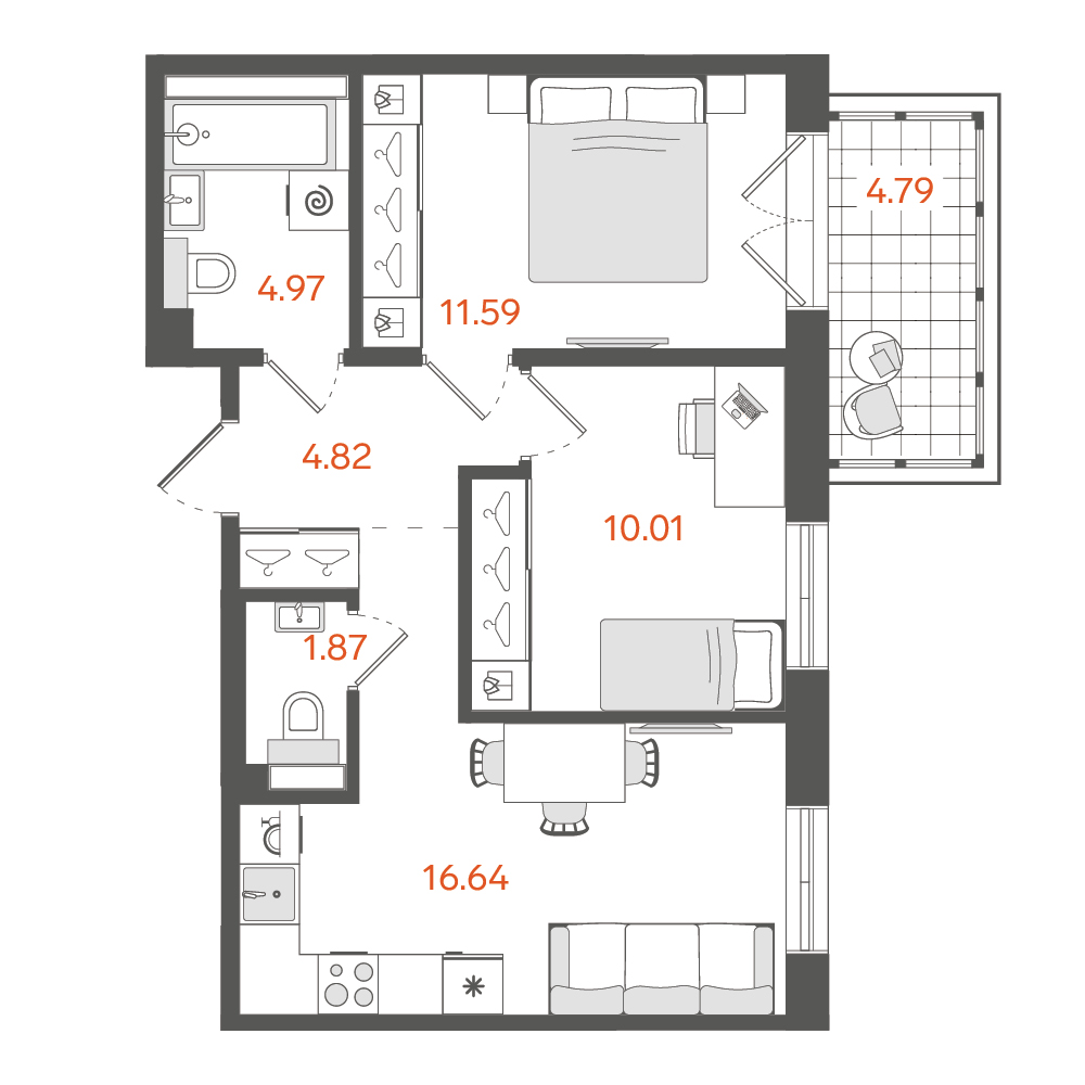 Двухкомнатные квартиры (22 квартиры, 22 планировки)