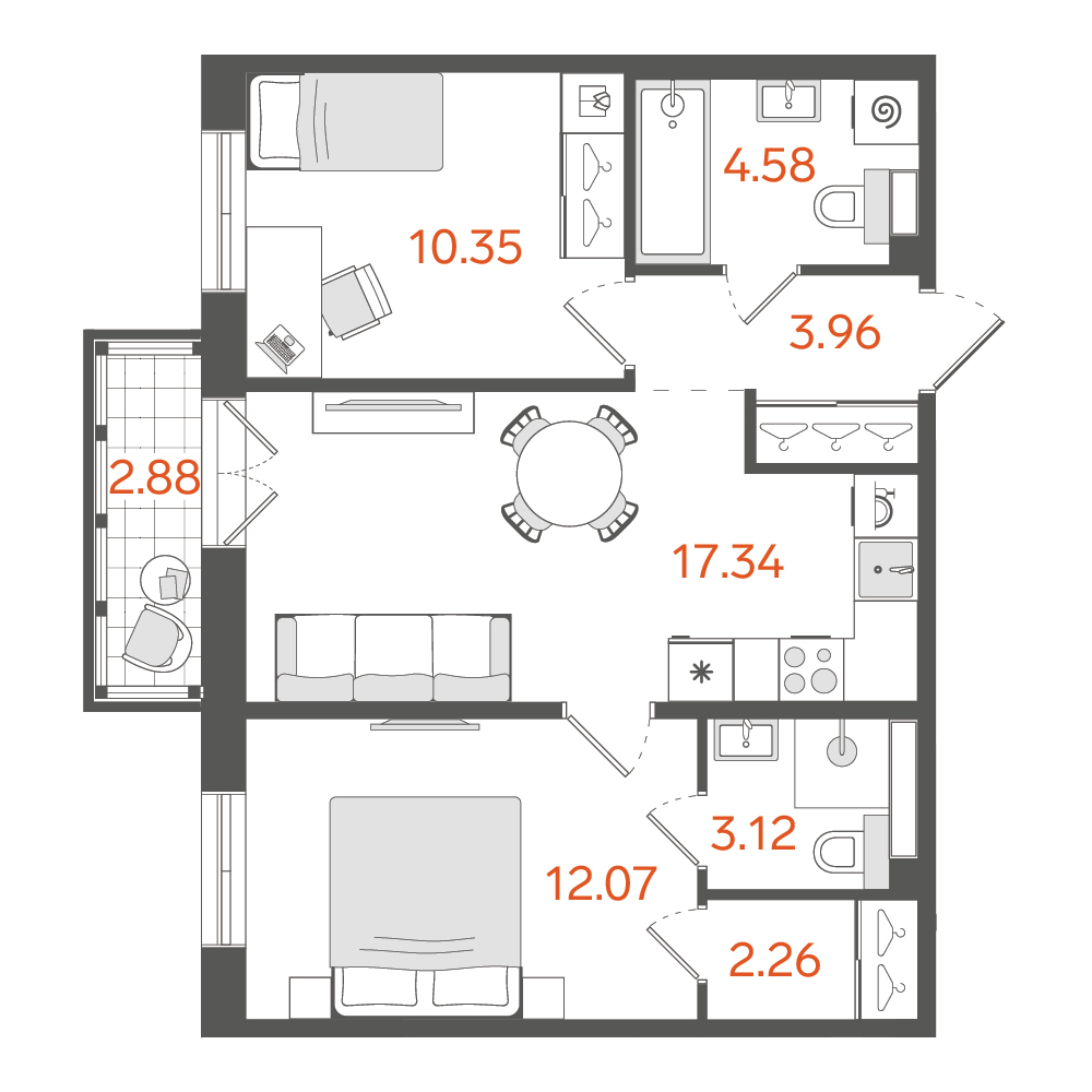 Студия (12 квартир, 12 планировок)
