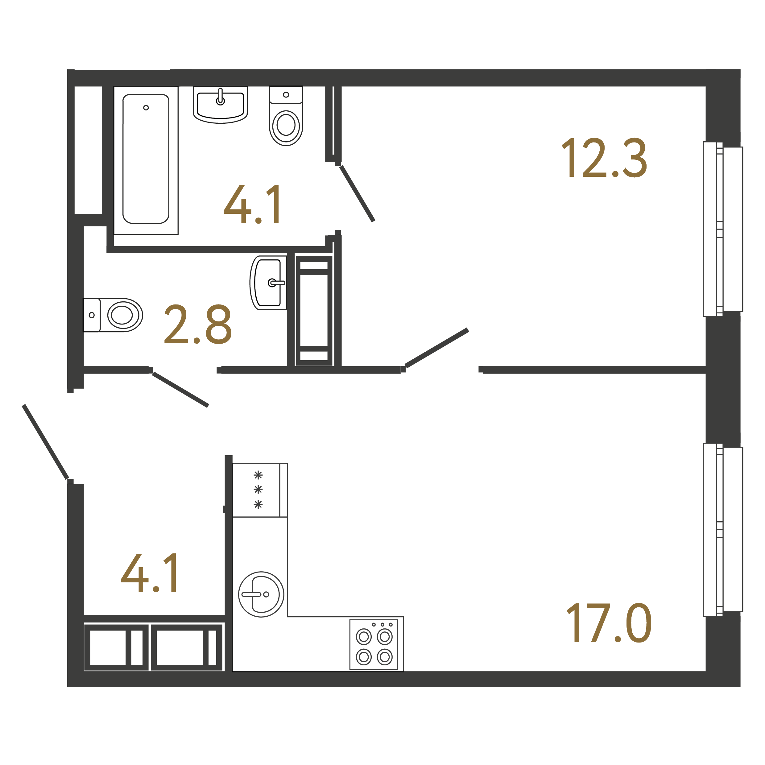 Однокомнатные квартиры (15 квартир, 6 планировок)