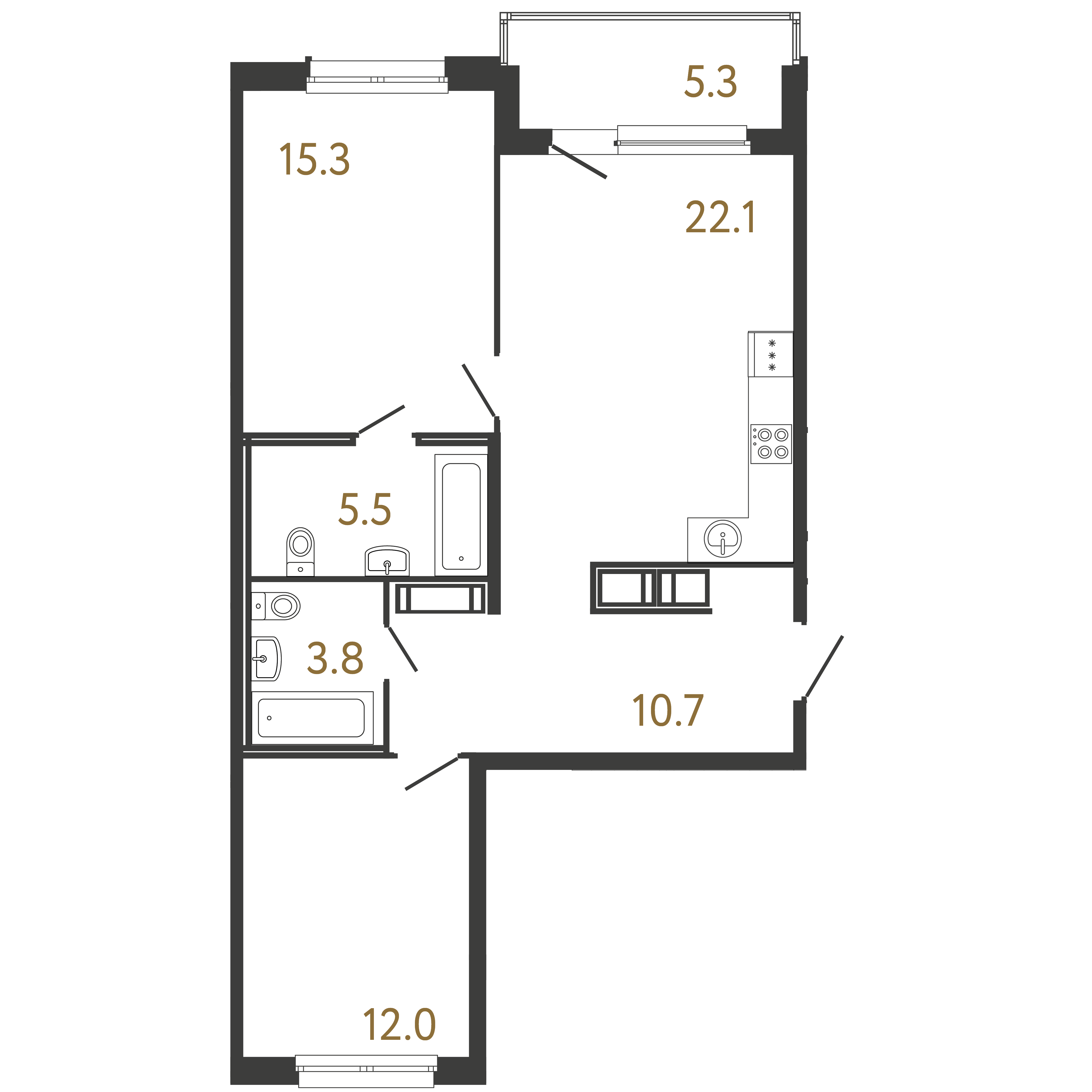 Двухкомнатные квартиры (38 квартир, 10 планировок)