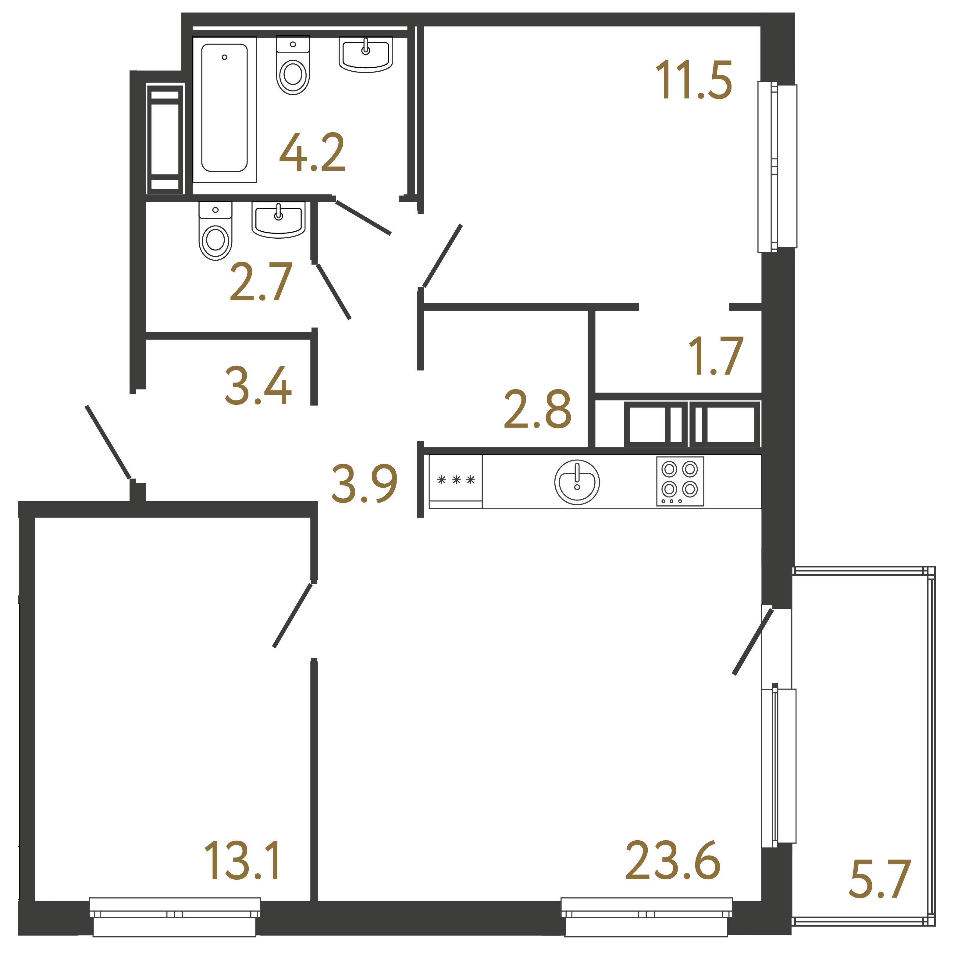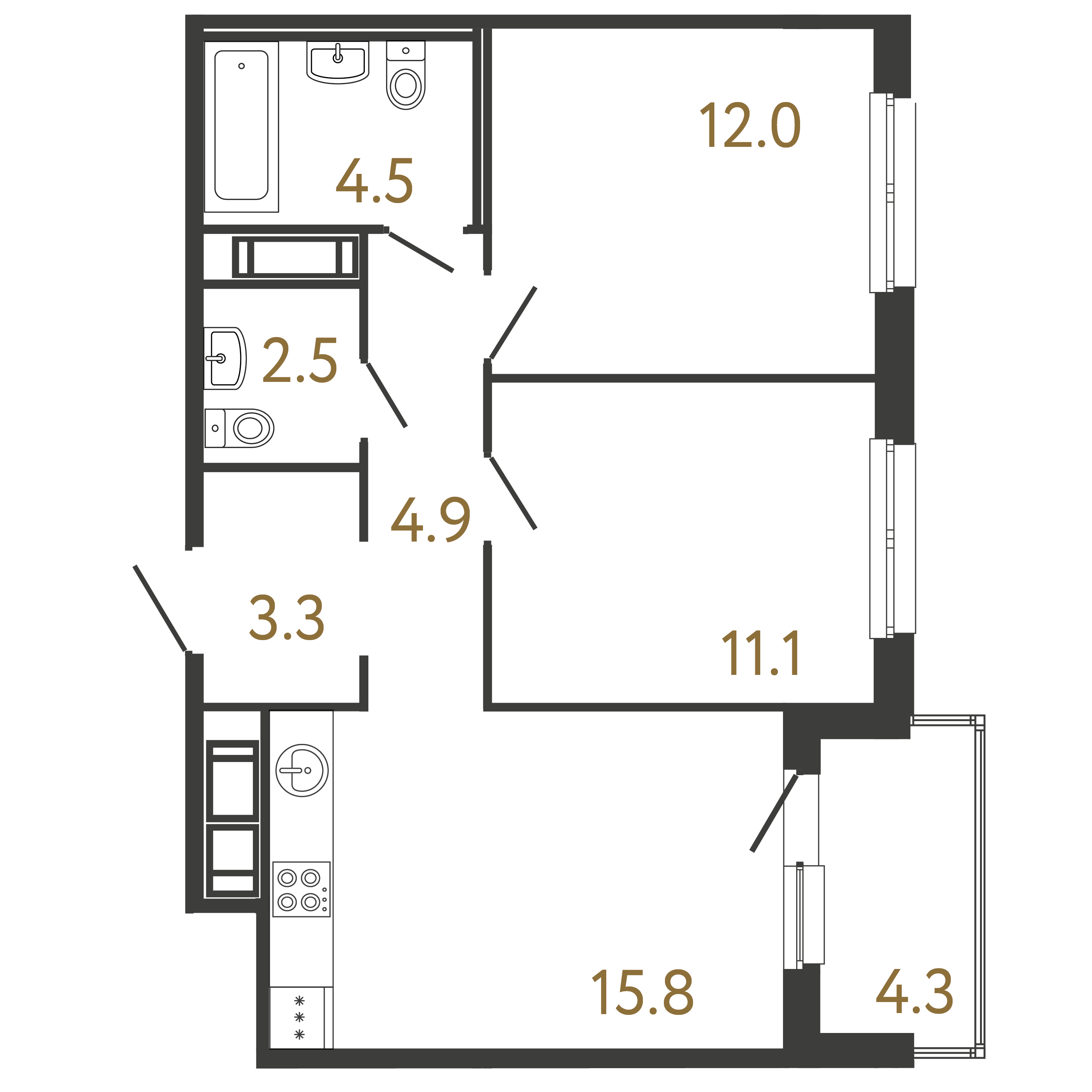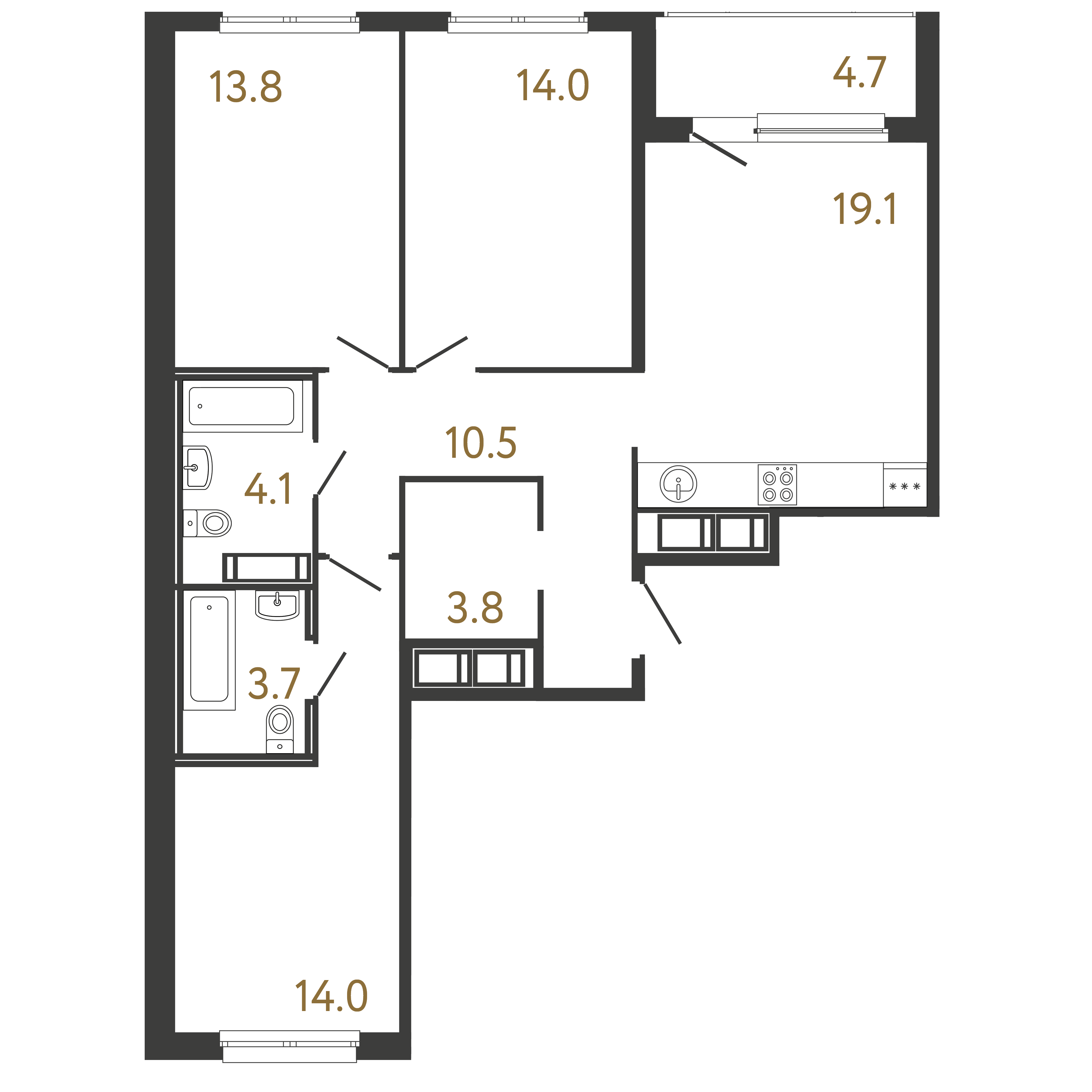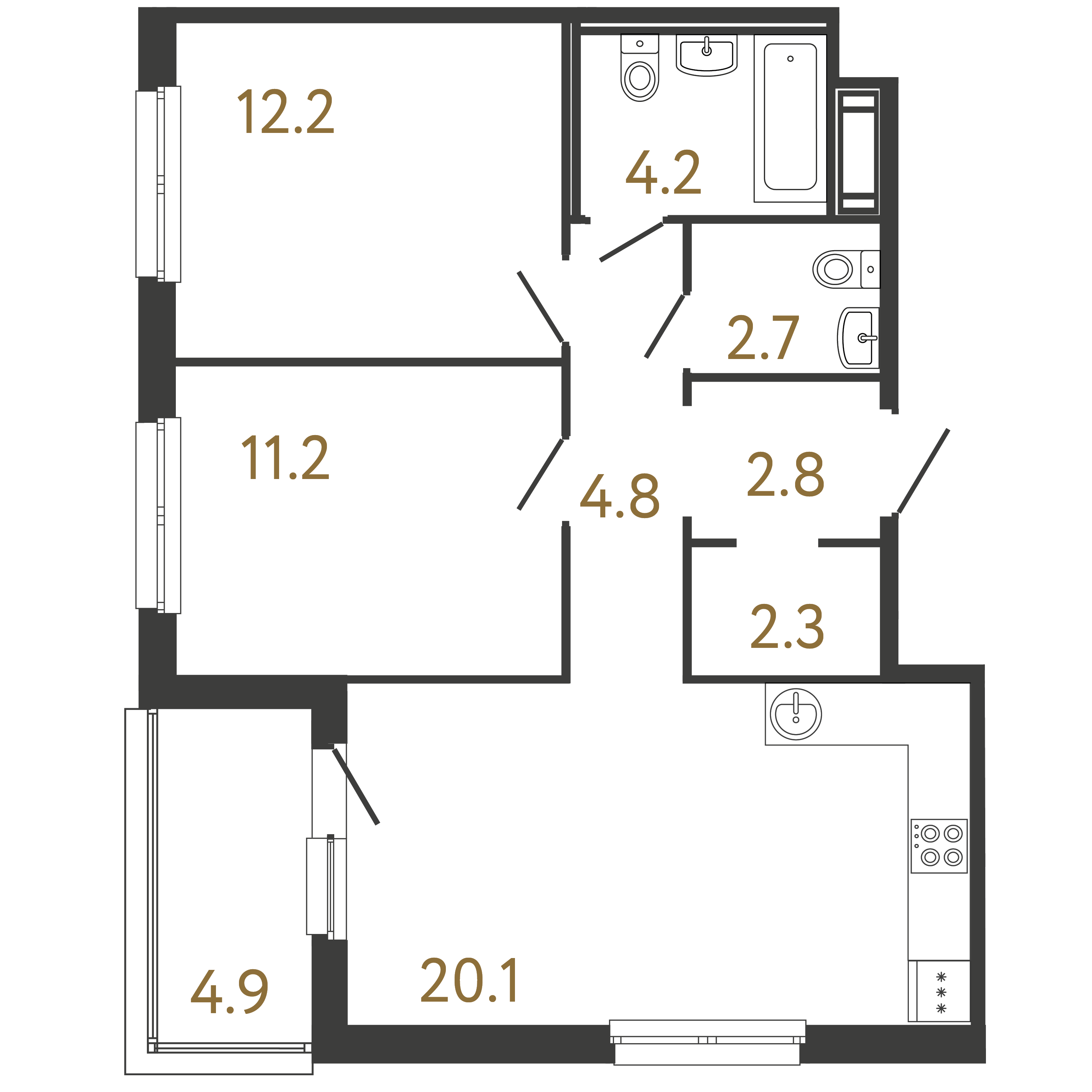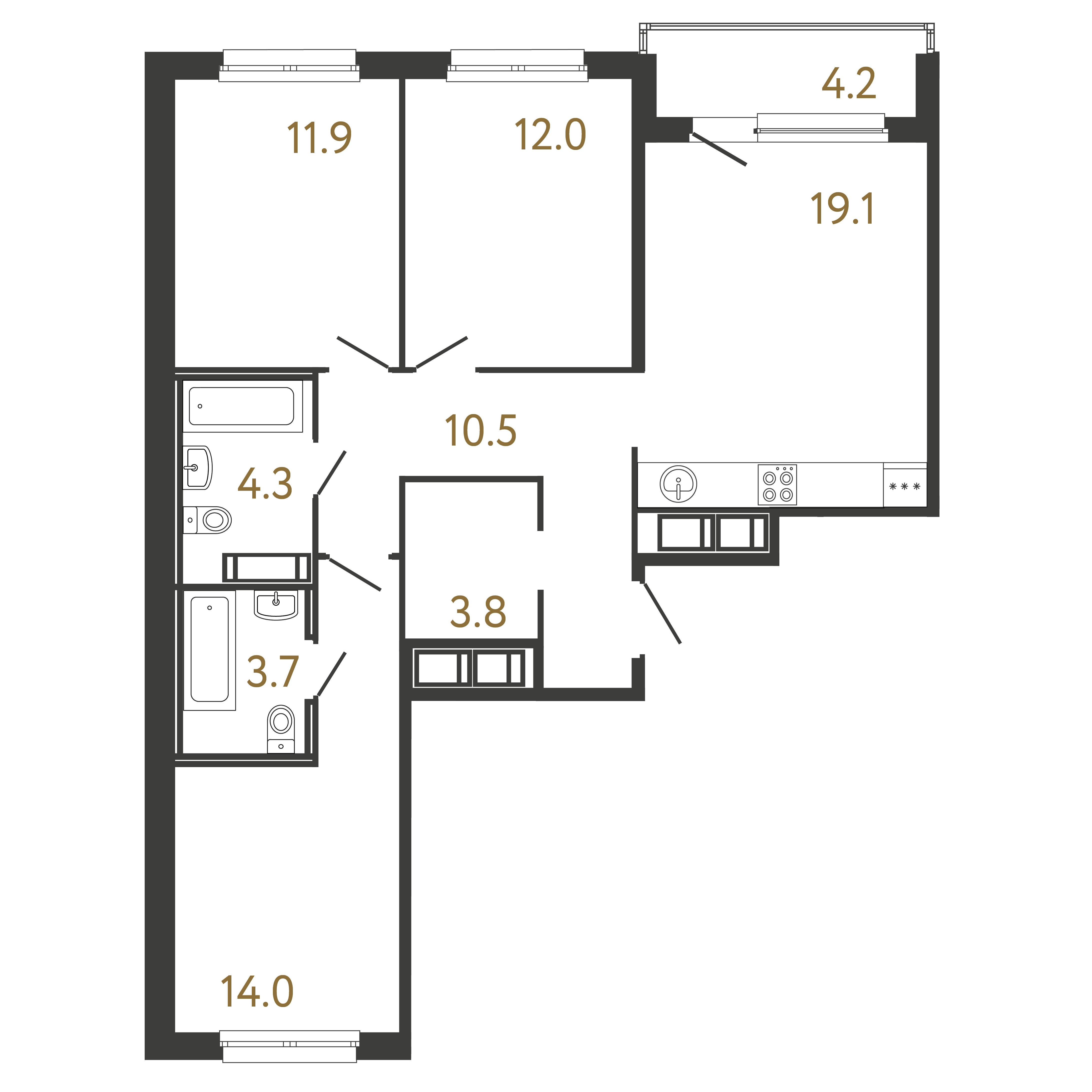 Трехкомнатные квартиры (3 квартиры, 3 планировки)