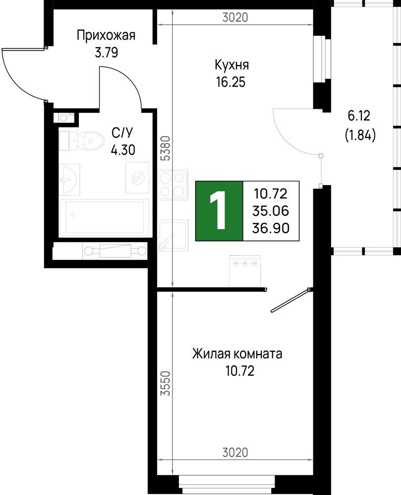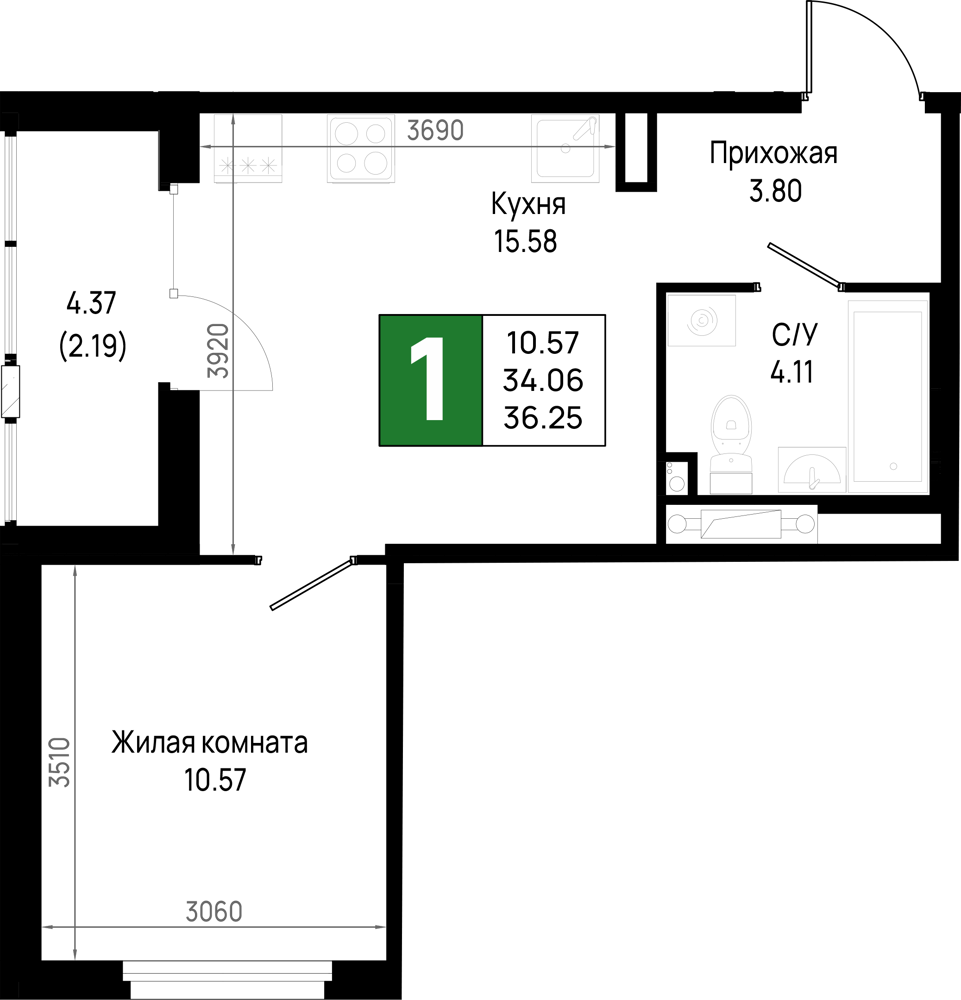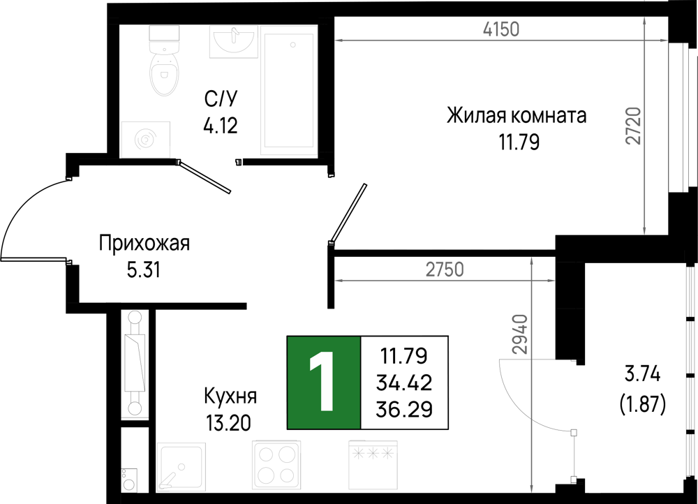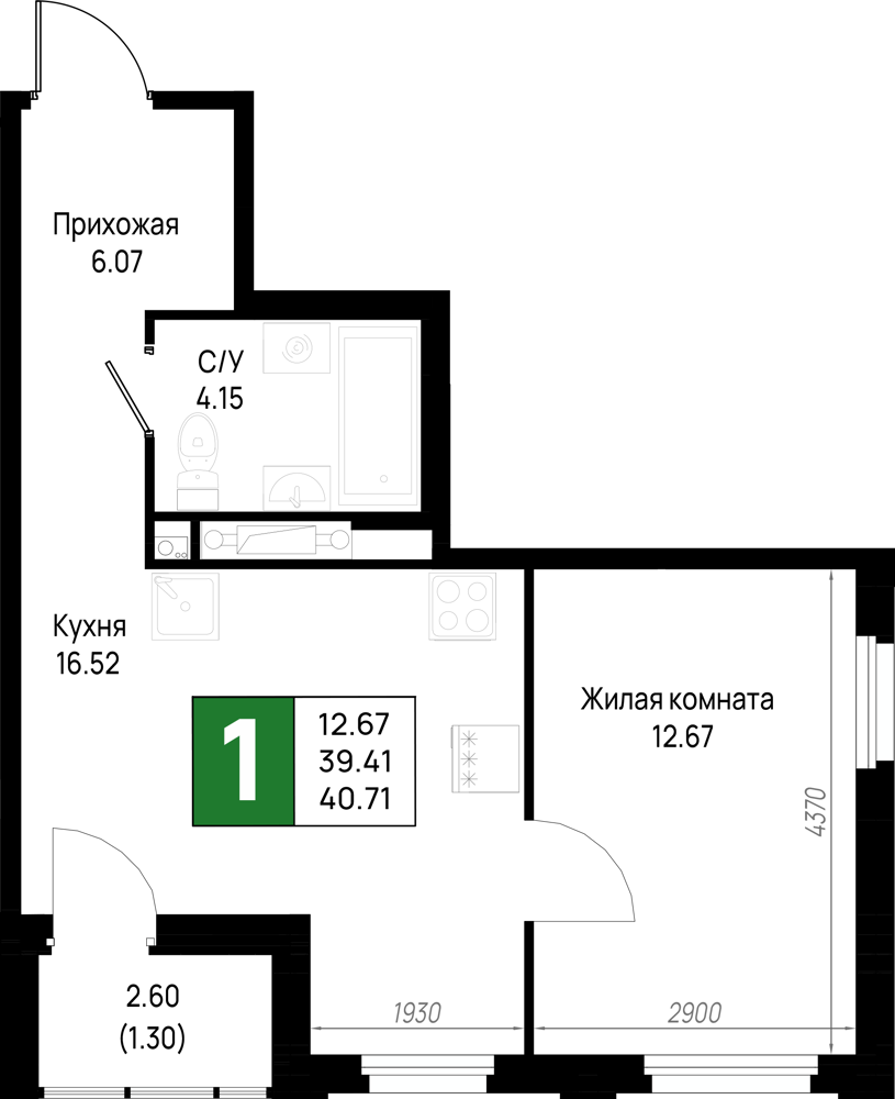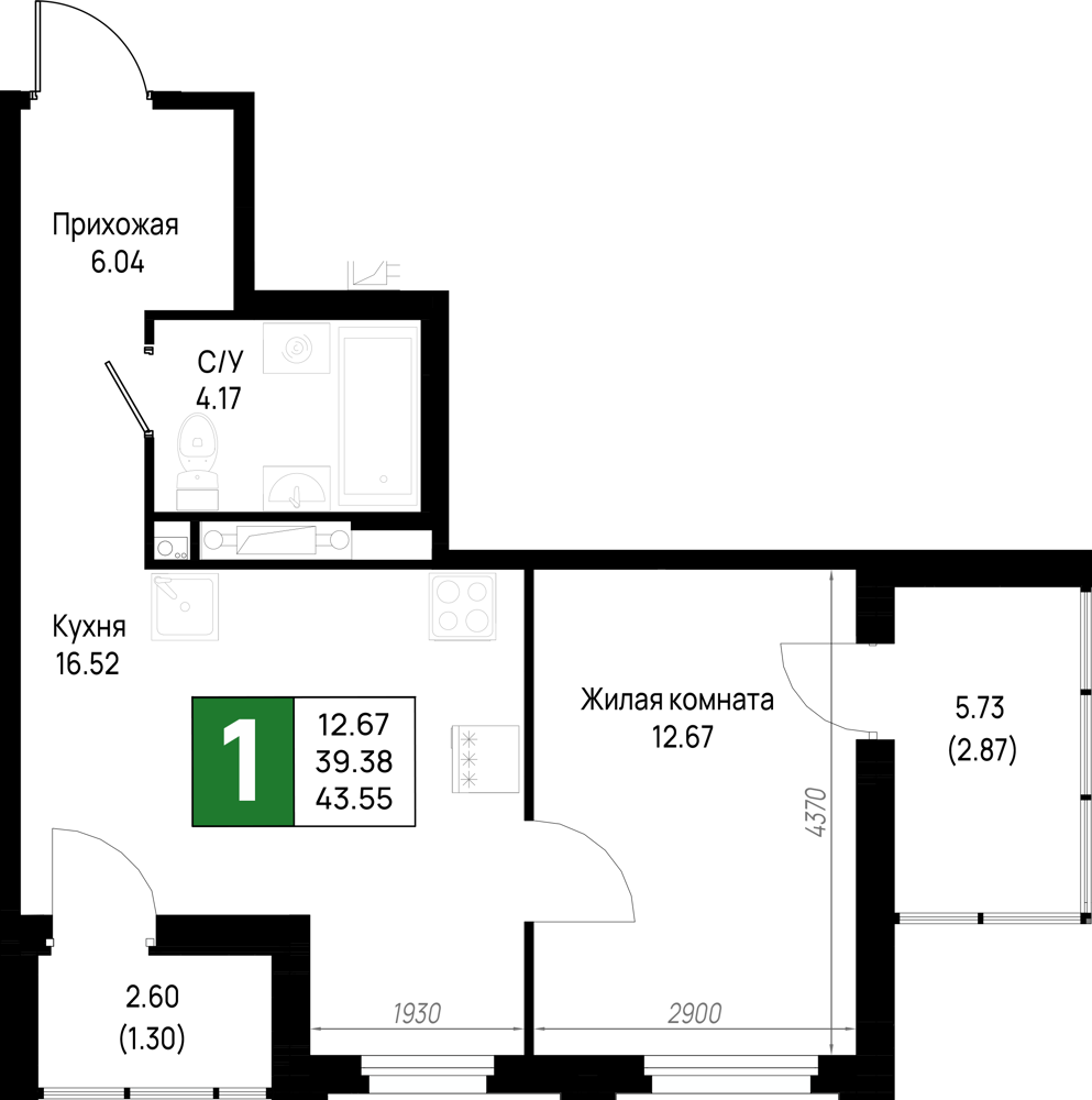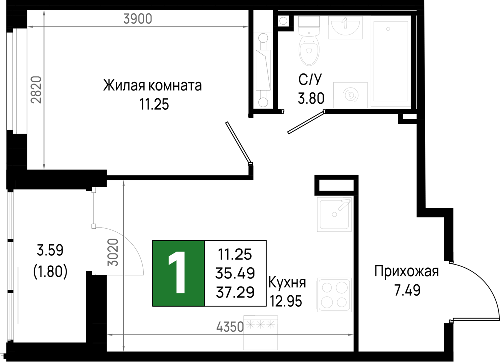 Однокомнатные квартиры (298 квартир, 29 планировок)