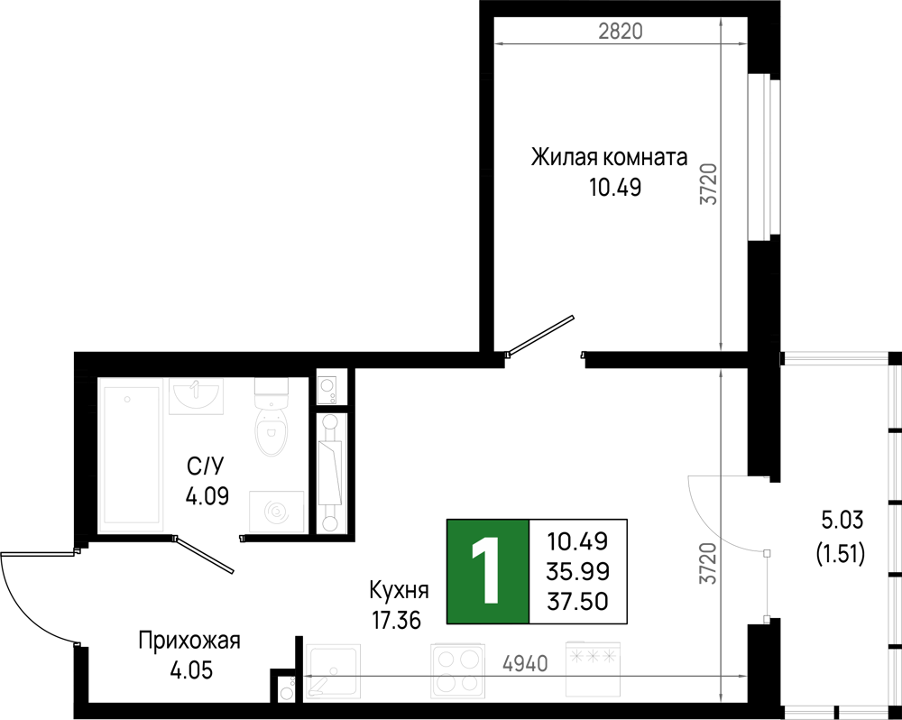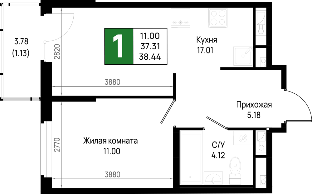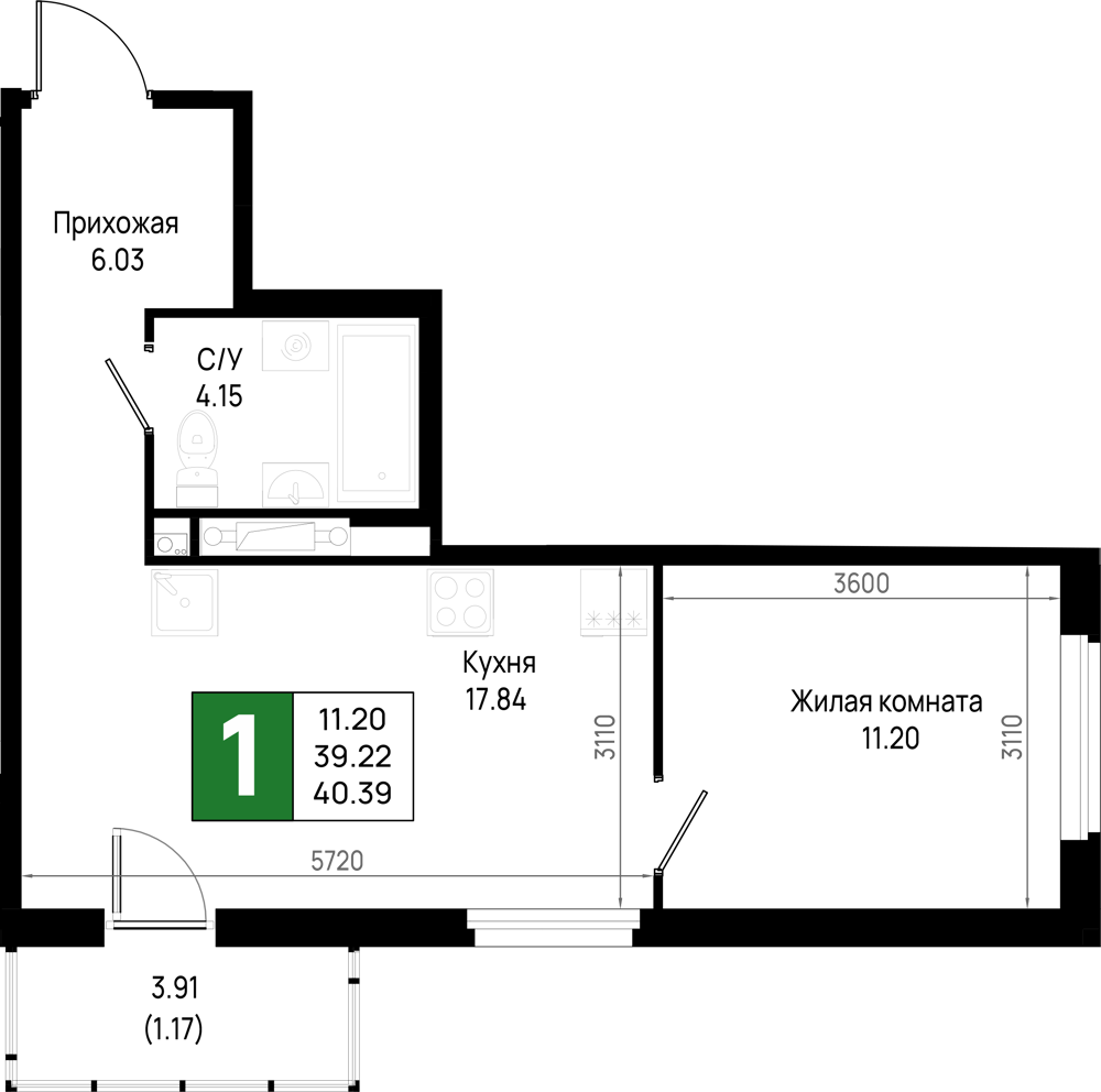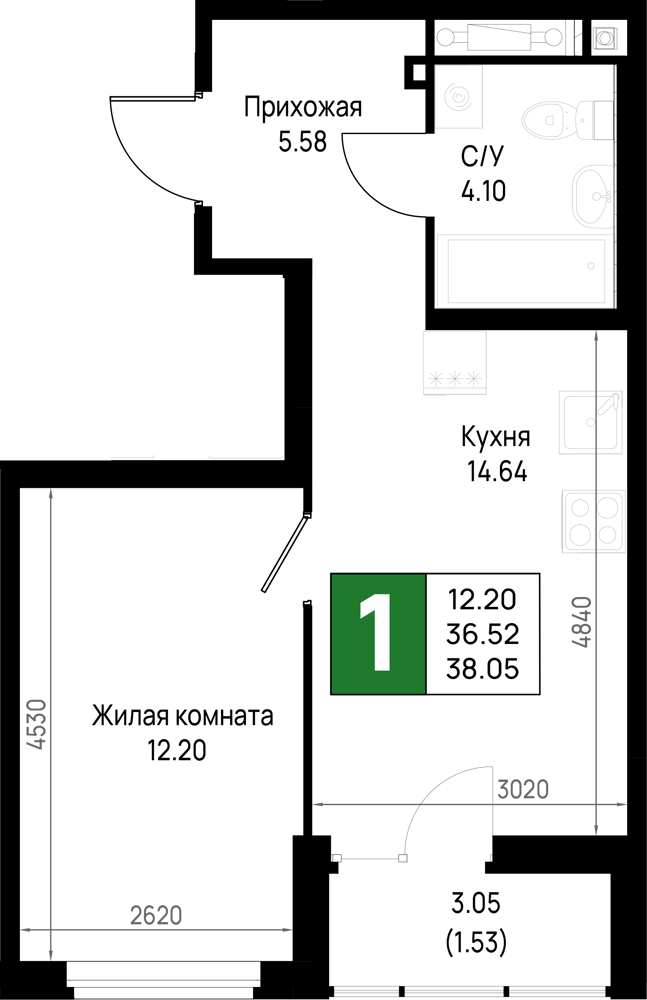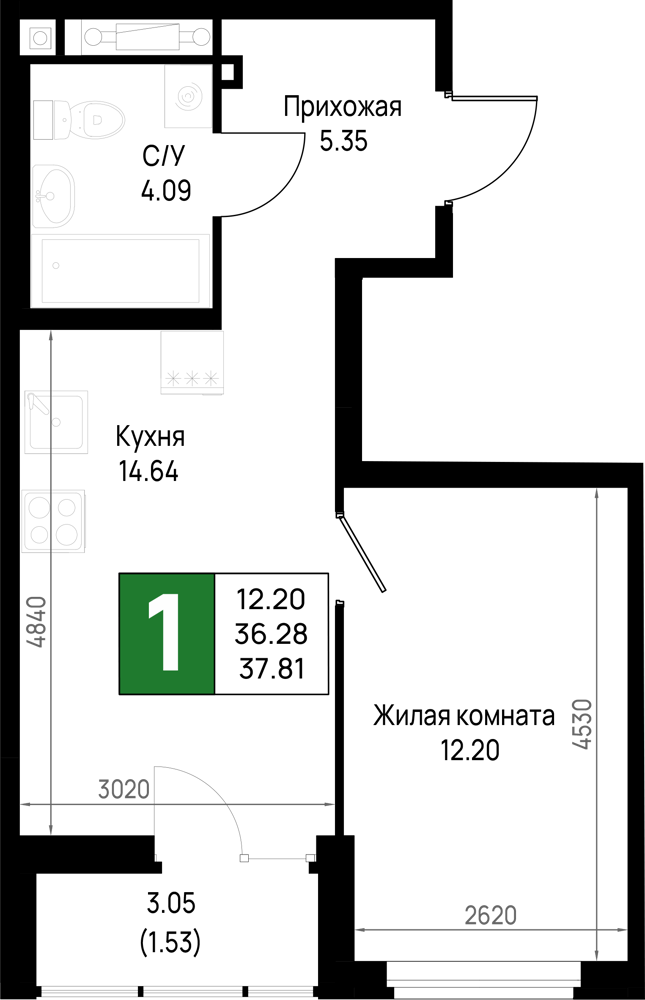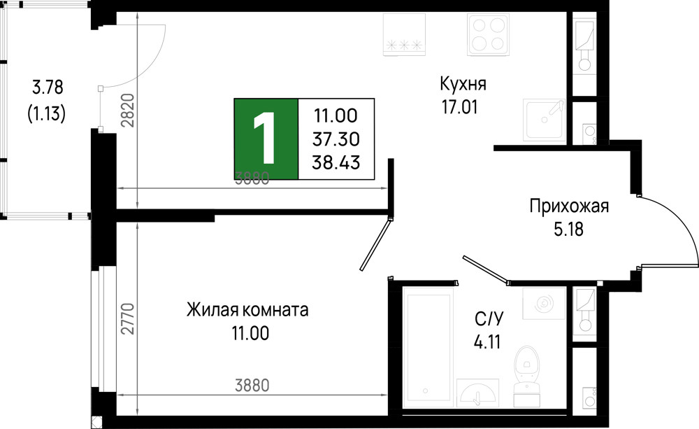 Однокомнатные квартиры (298 квартир, 29 планировок)