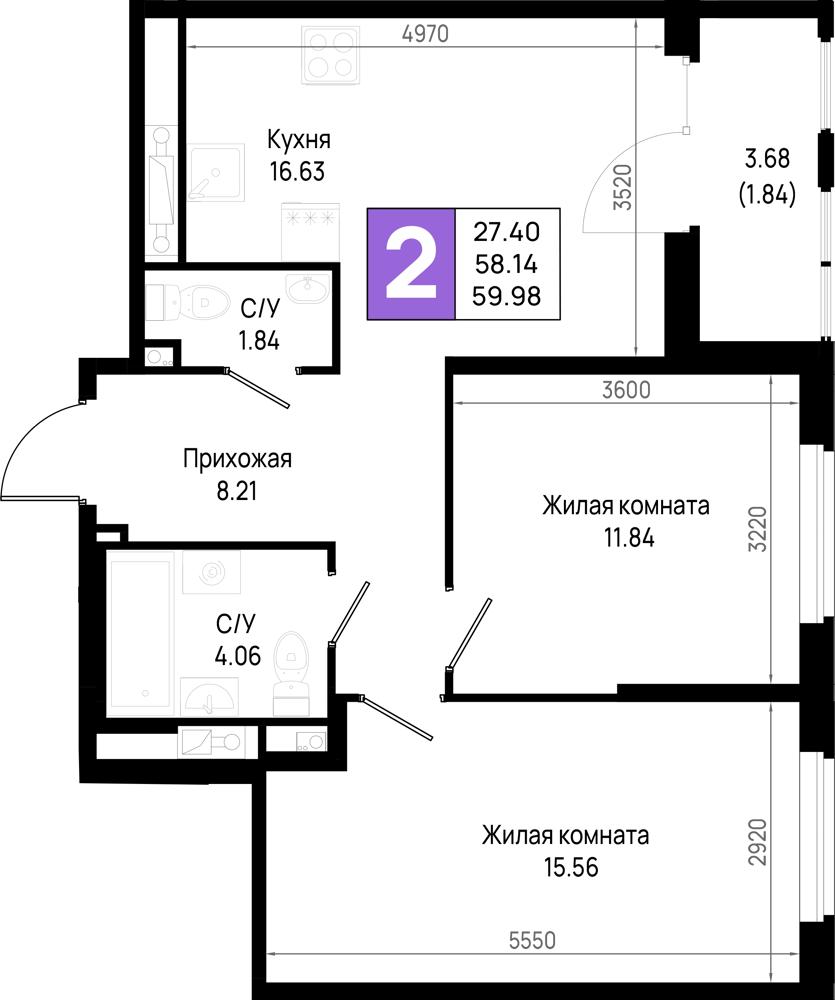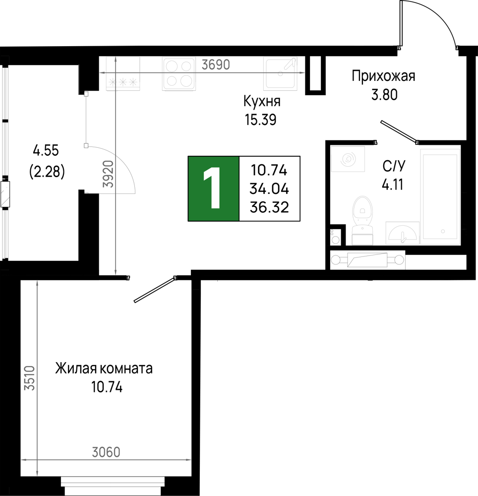 | Потолки | 2.74 м |