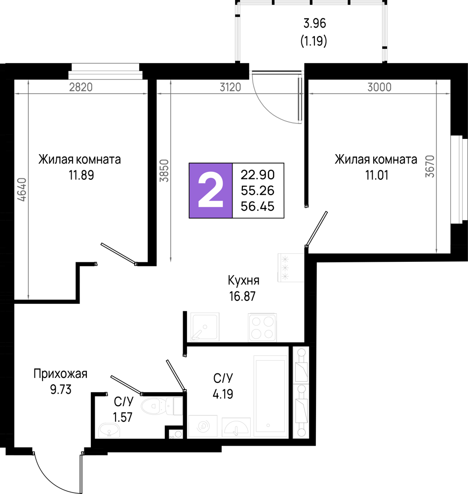 Двухкомнатные квартиры (114 квартир, 13 планировок)