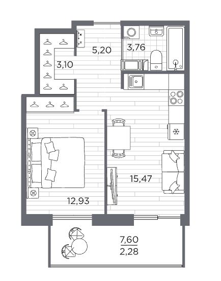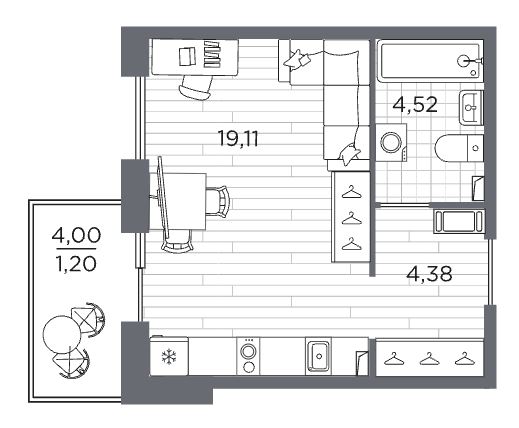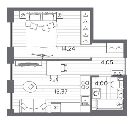 Однокомнатные квартиры (3 квартиры, 3 планировки)