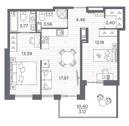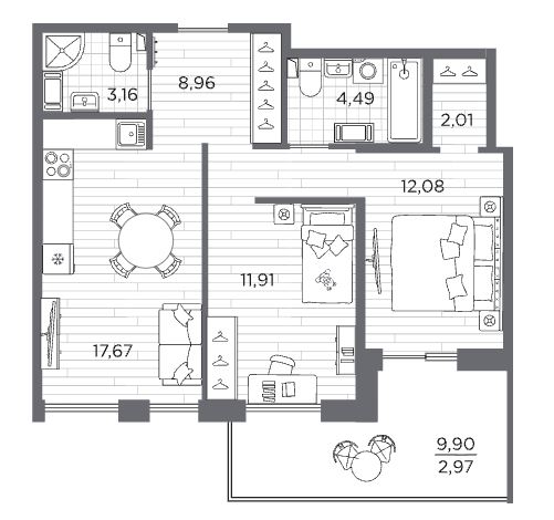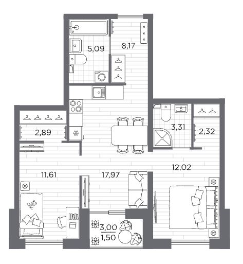 Двухкомнатные квартиры (3 квартиры, 3 планировки)