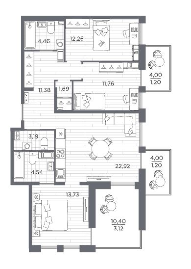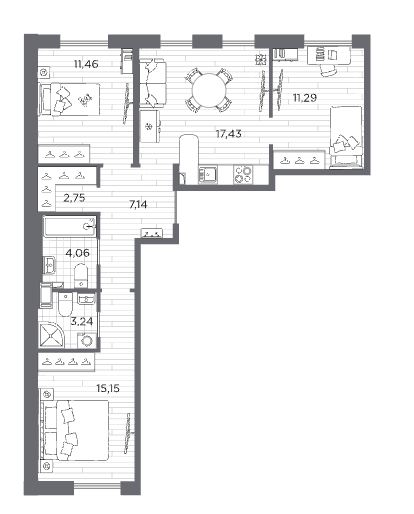 Трехкомнатные квартиры (2 квартиры, 2 планировки)