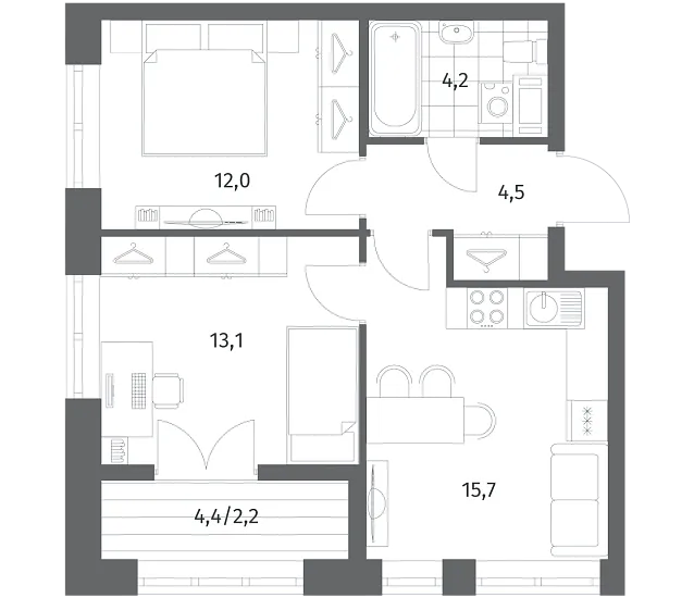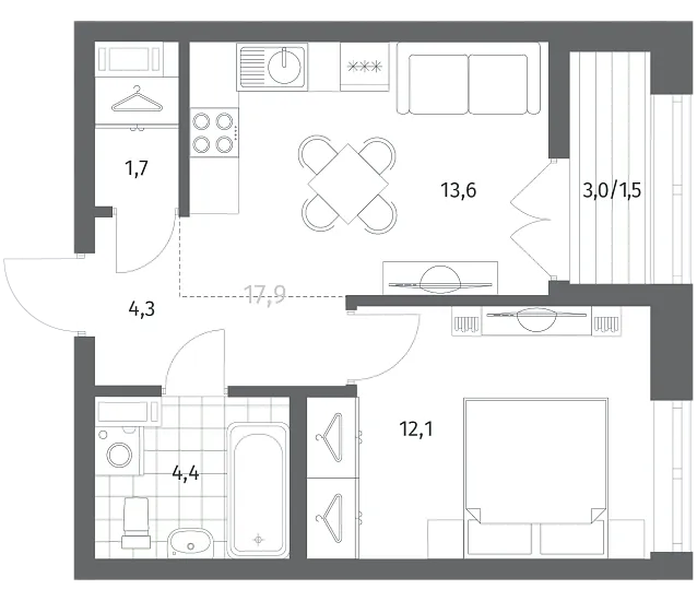 Однокомнатные квартиры (29 квартир, 29 планировок)