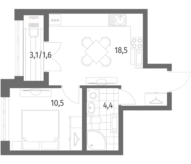 Однокомнатные квартиры (24 квартиры, 24 планировки)