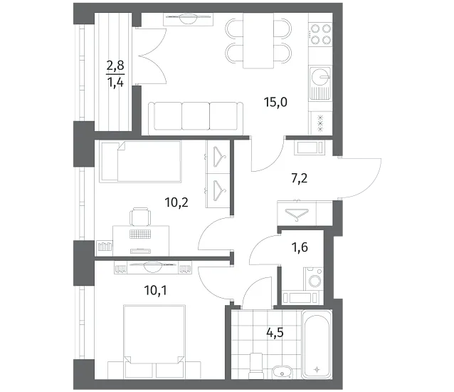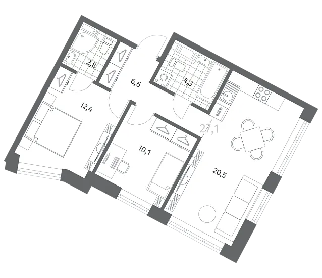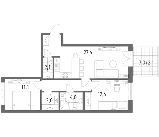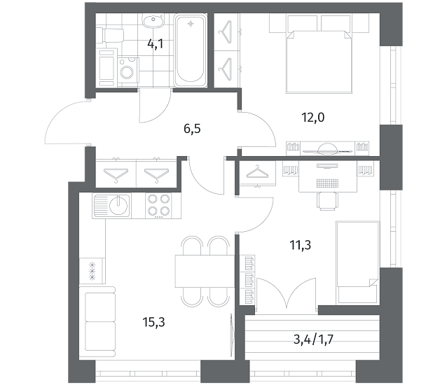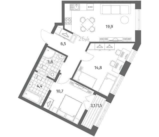 В жилом комплексе предложены одно-, двух- и трехкомнатные квартиры площадью 36,89-97,69 кв. м. Жилье в "НьюПитере" повышенного комфорта: