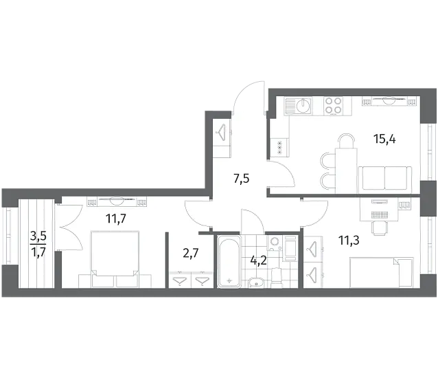 Двухкомнатные квартиры (11 квартир, 11 планировок)