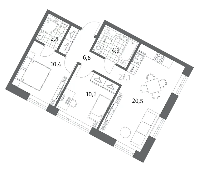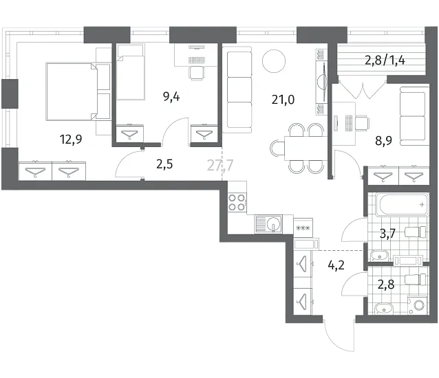 Двухкомнатные квартиры (9 квартир, 9 планировок)