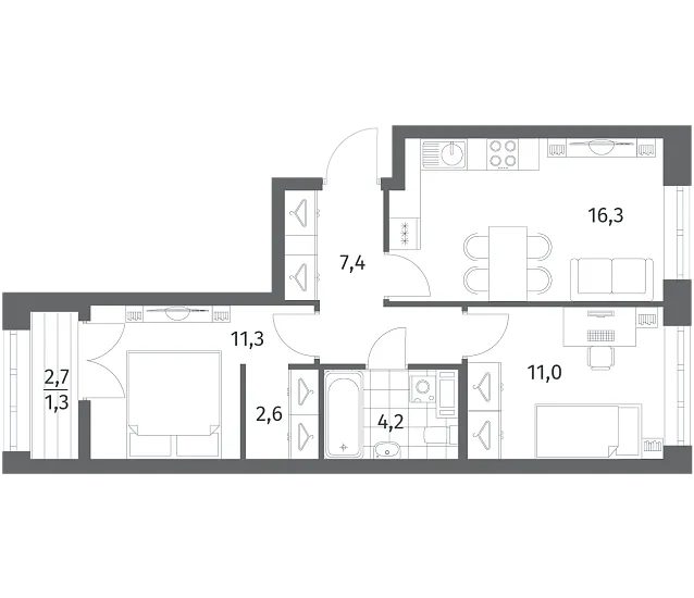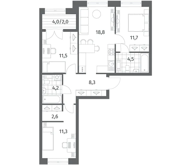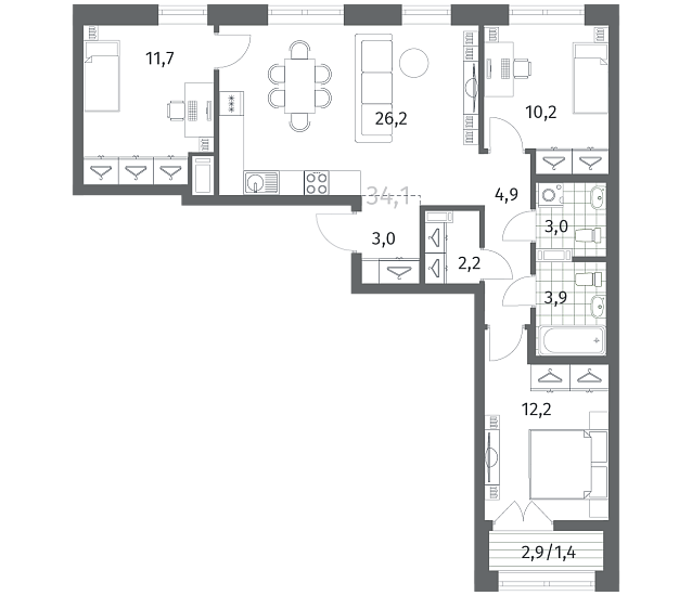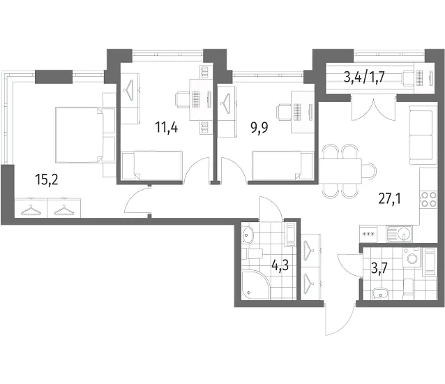 Трехкомнатные квартиры (7 квартир, 7 планировок)