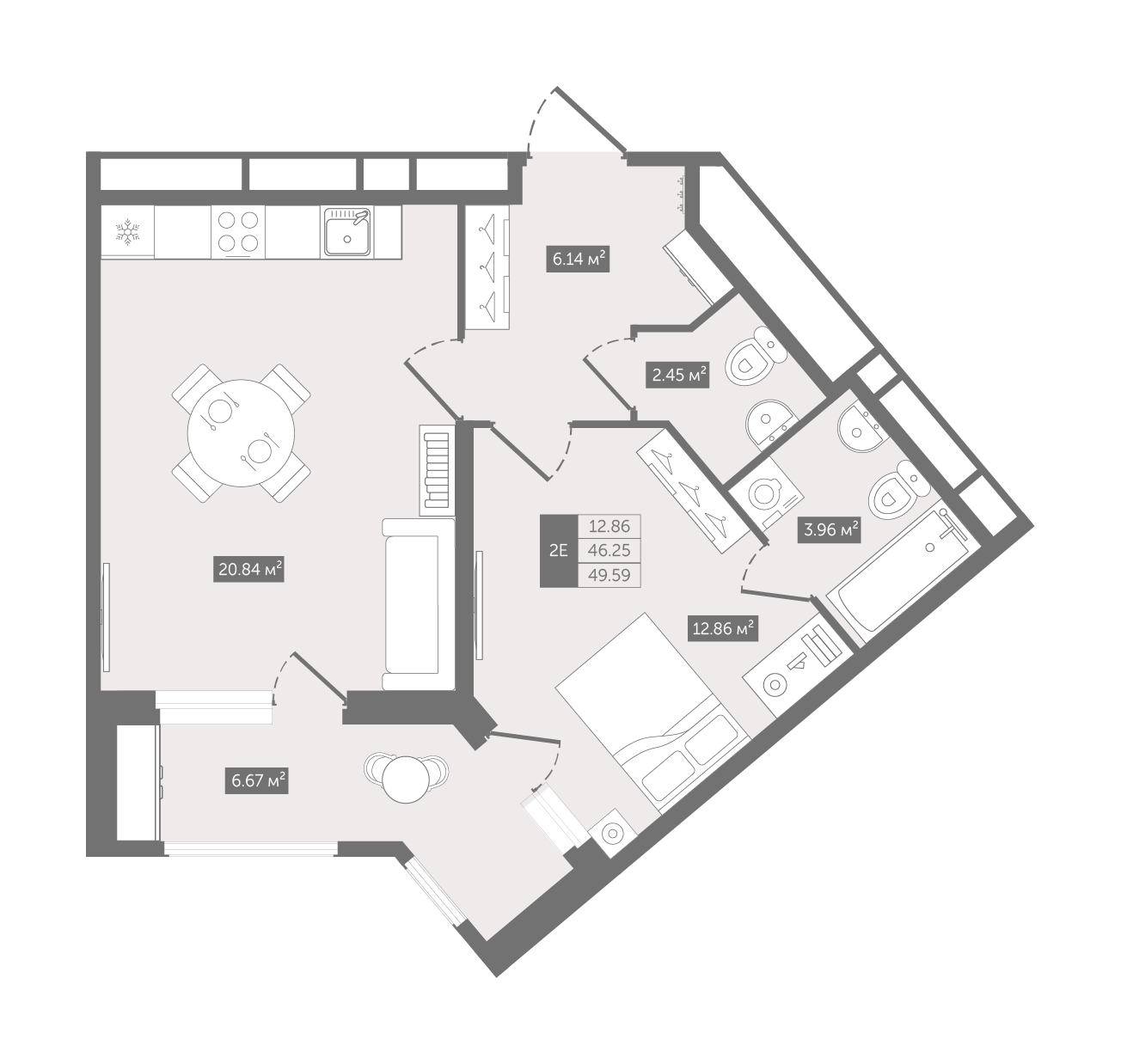 | 49.59 м2 | 12.86 | 20.84 | 12 этаж | 2 кв 2026 | 147 525 a/м2 | 7 315 765 руб |