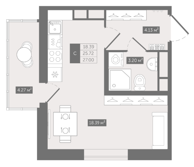 Студия (5 квартир, 5 планировок)