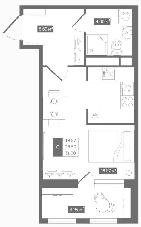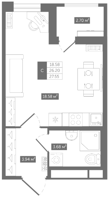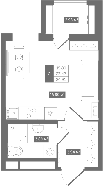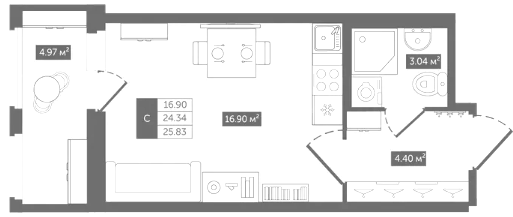 Студия (6 квартир, 6 планировок)
