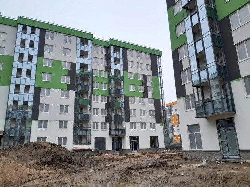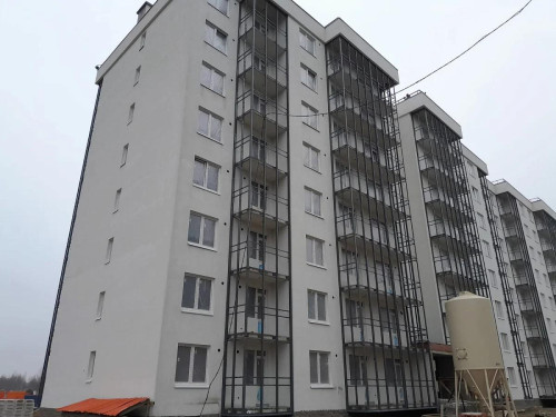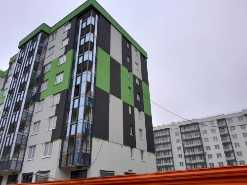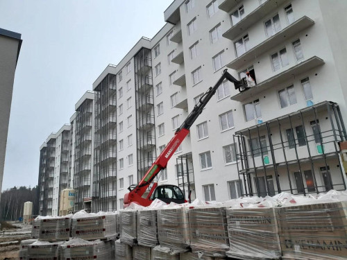 - Ведутся отделочные работы (штукатурка наружных стен).