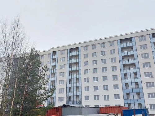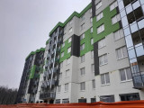 - Устройство фасадов: утепление минватой, нанесение декоративного слоя стен и вентиляционных шахт, выходов на кровлю (остались входные группы, приостановлены до апреля 2026 г.);