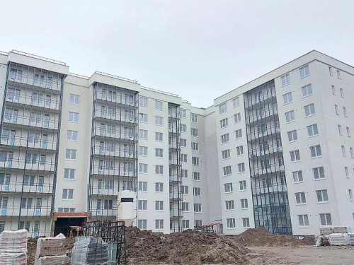 - Облицовка цоколя камнем (остались входные группы, приостановлены работы до апреля 2026 г.);