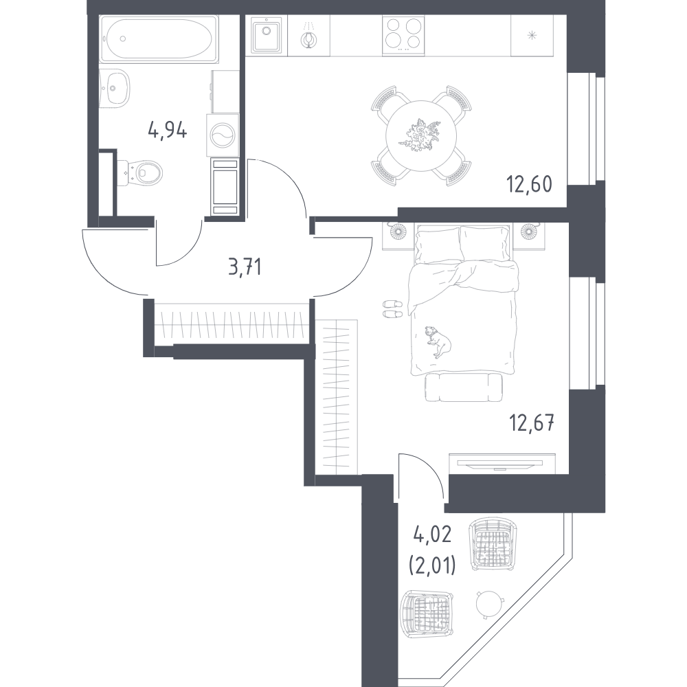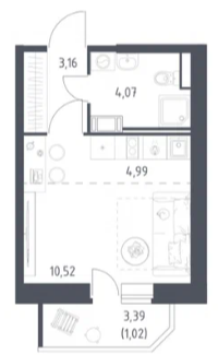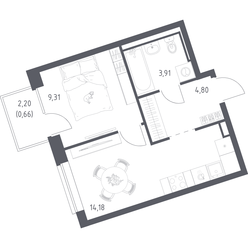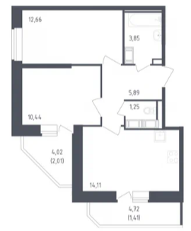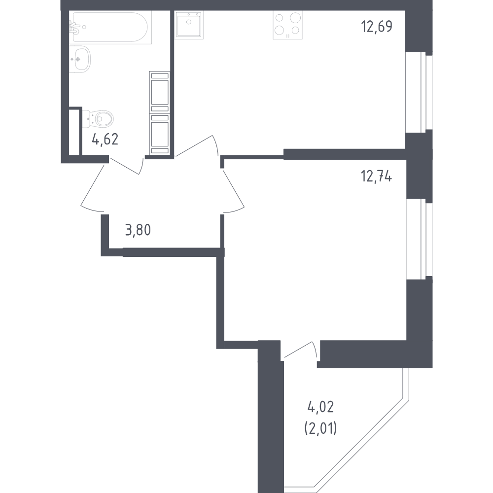 Однокомнатные квартиры (14 квартир, 14 планировок)