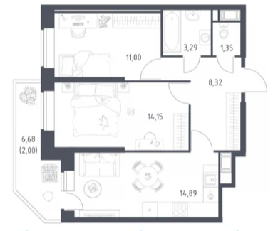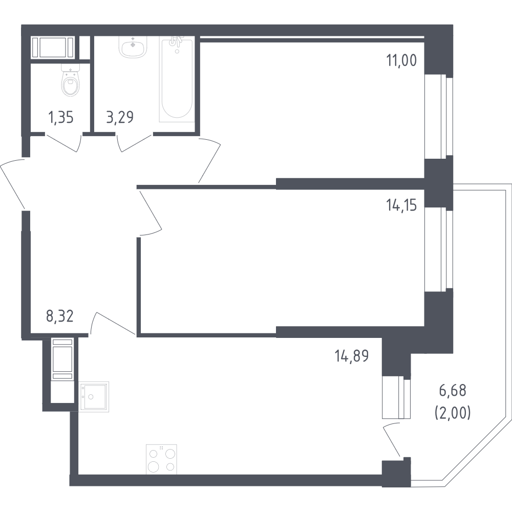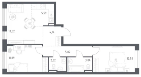 Двухкомнатные квартиры (13 квартир, 13 планировок)