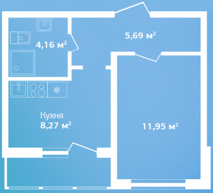 Однокомнатные квартиры (5 квартир, 5 планировок)