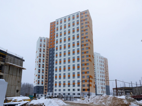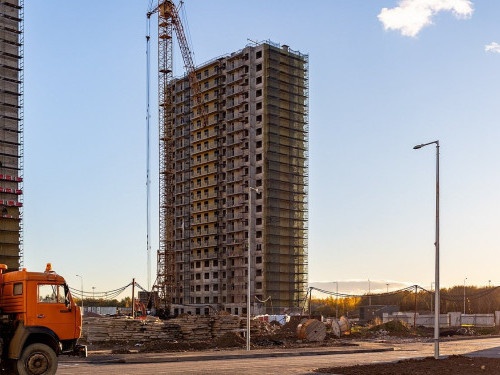 - Дом 5 - Осуществляется монтаж сборного железобетона 18-го этажа.