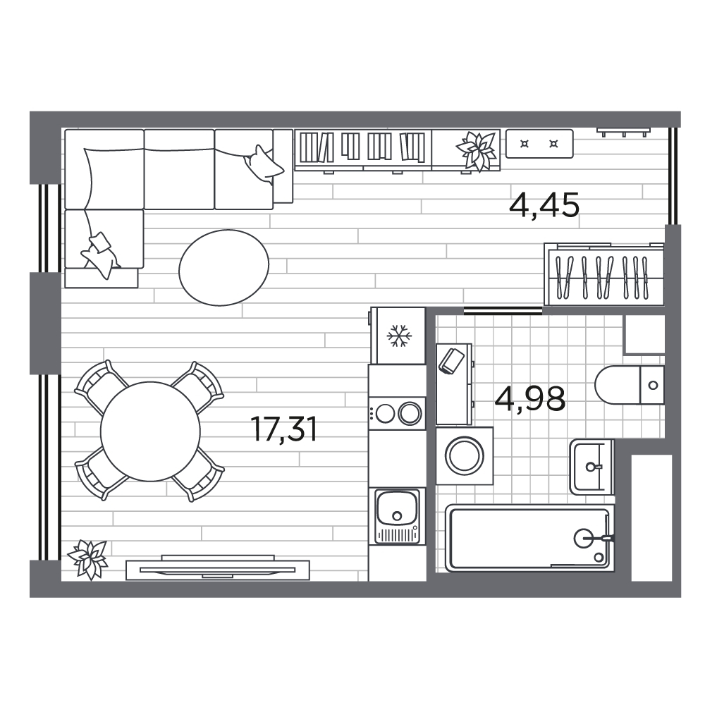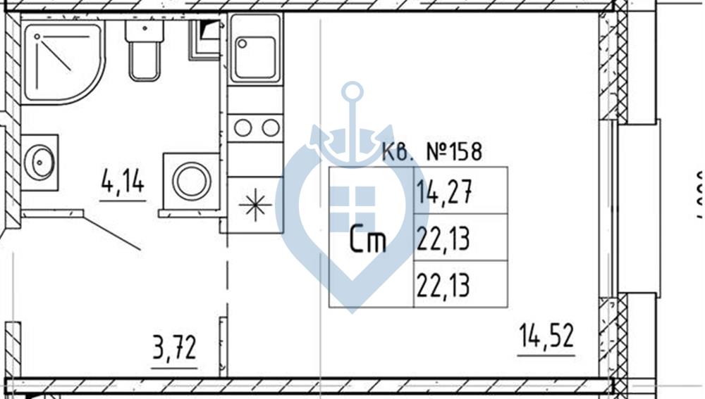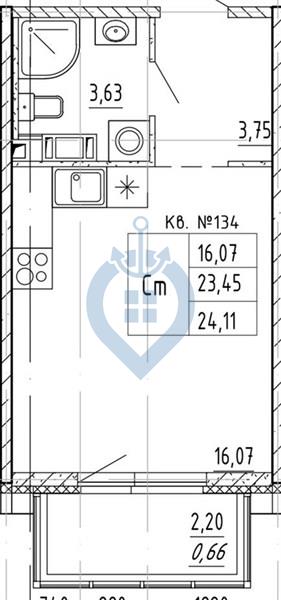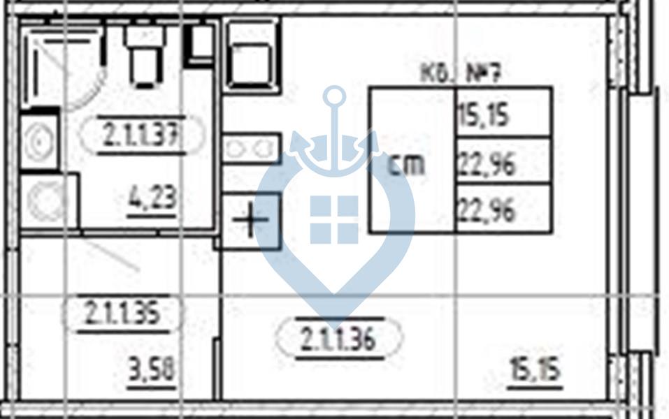 Студия (56 квартир, 32 планировки)