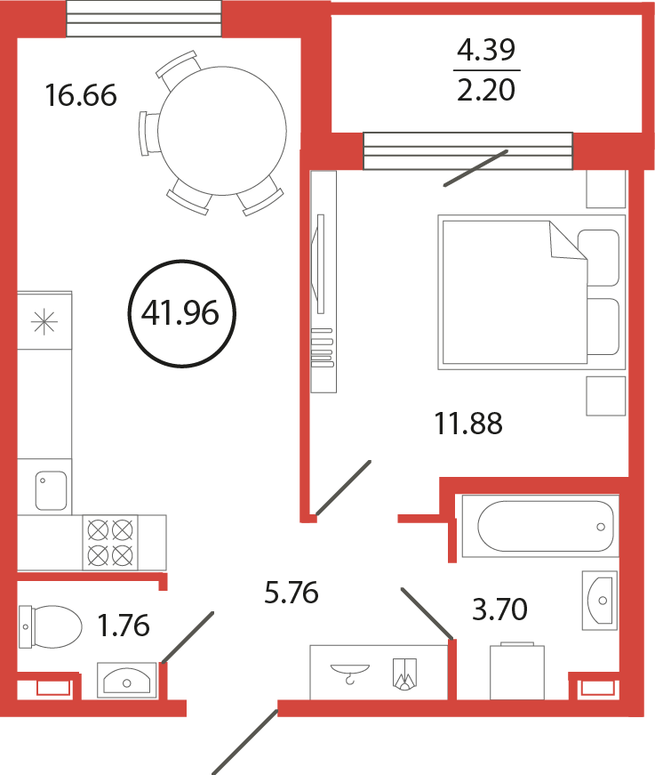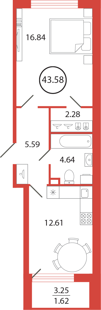 Однокомнатные квартиры (16 квартир, 16 планировок)