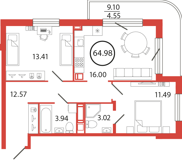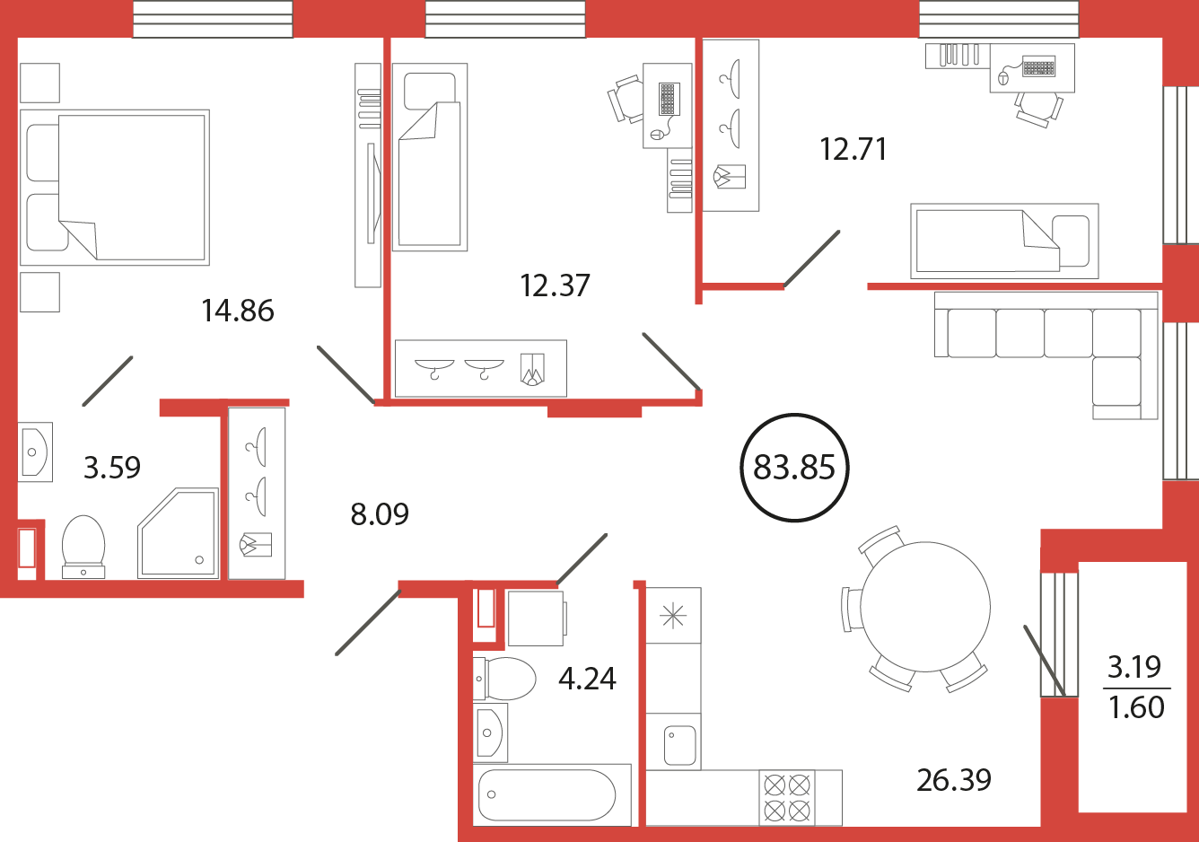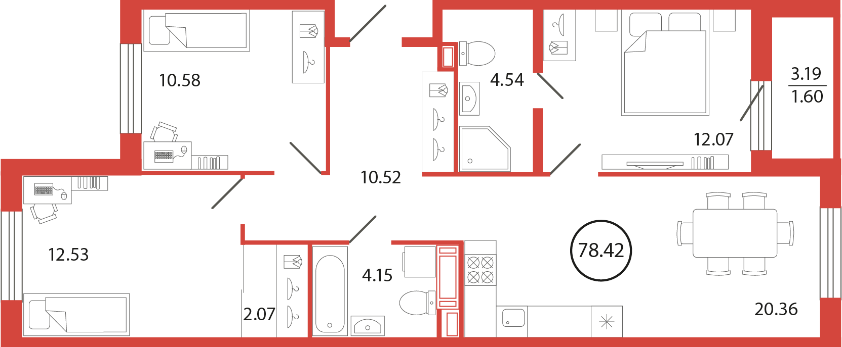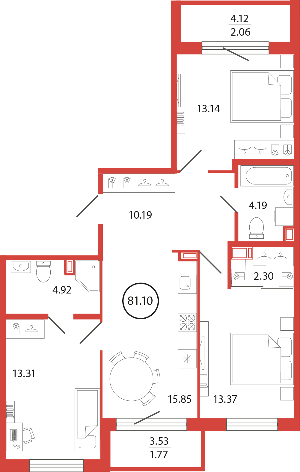 Трехкомнатные квартиры (3 квартиры, 3 планировки)
