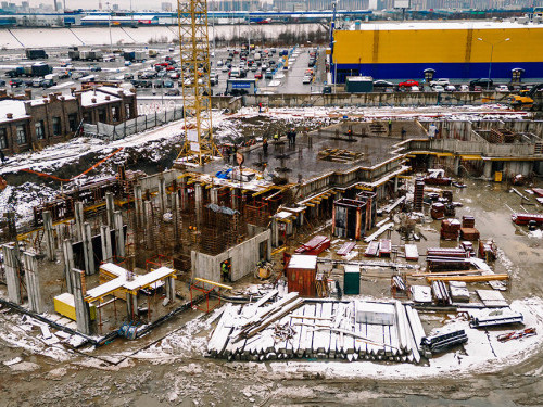 - В корпусе №2 полностью завершен монтаж стен 1 этажа, на 99% завершено устройство дренажа. Начат монтаж лестниц, вентблоков, лифтовых шахт (готовность 5%). Стены 2 этажа смонтированы на 50%, перекрытия – на 35%. Строители приступили к возведению стен 3 этажа (на данный момент готовность работ составляет 5%).