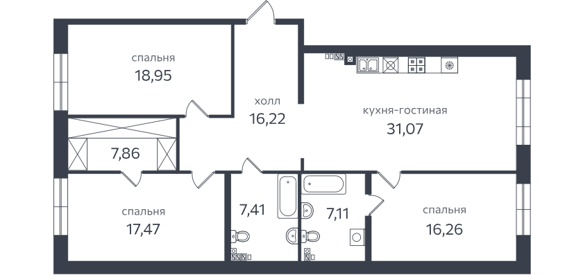 Трехкомнатные квартиры (1 квартира, 1 планировка)