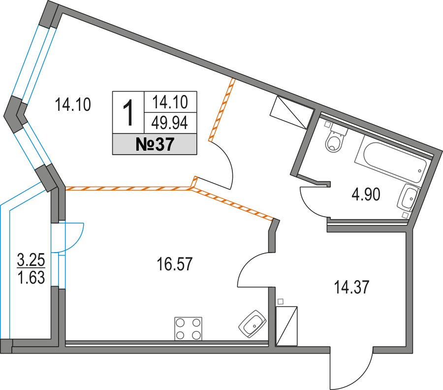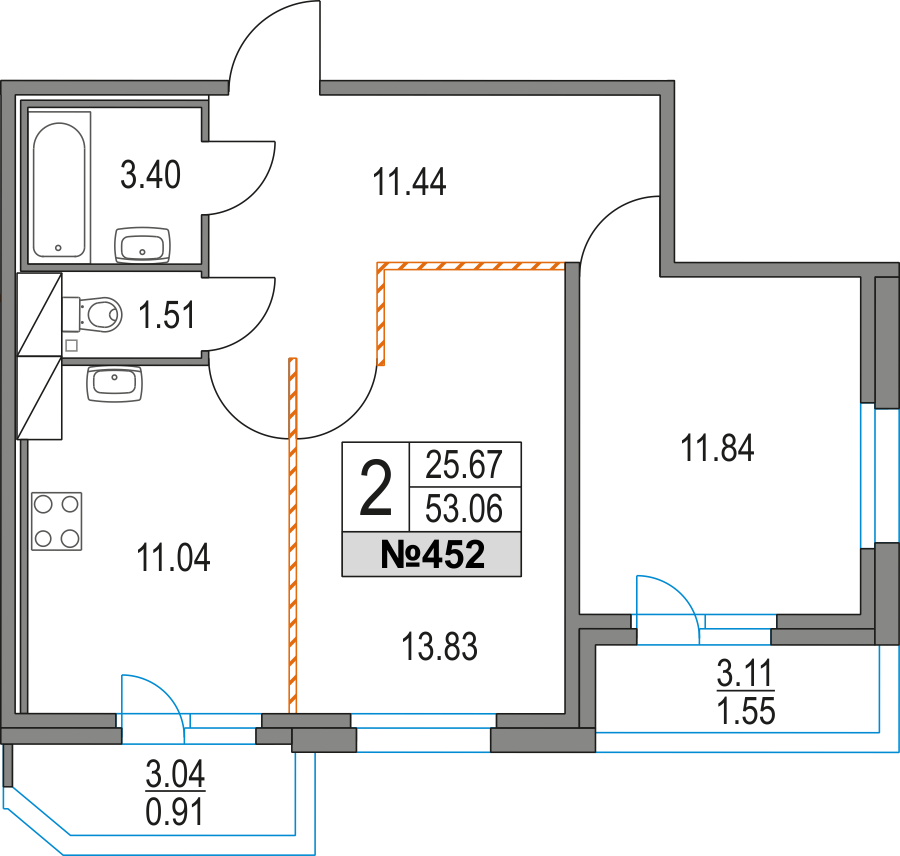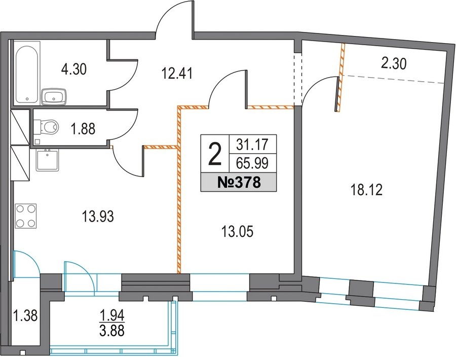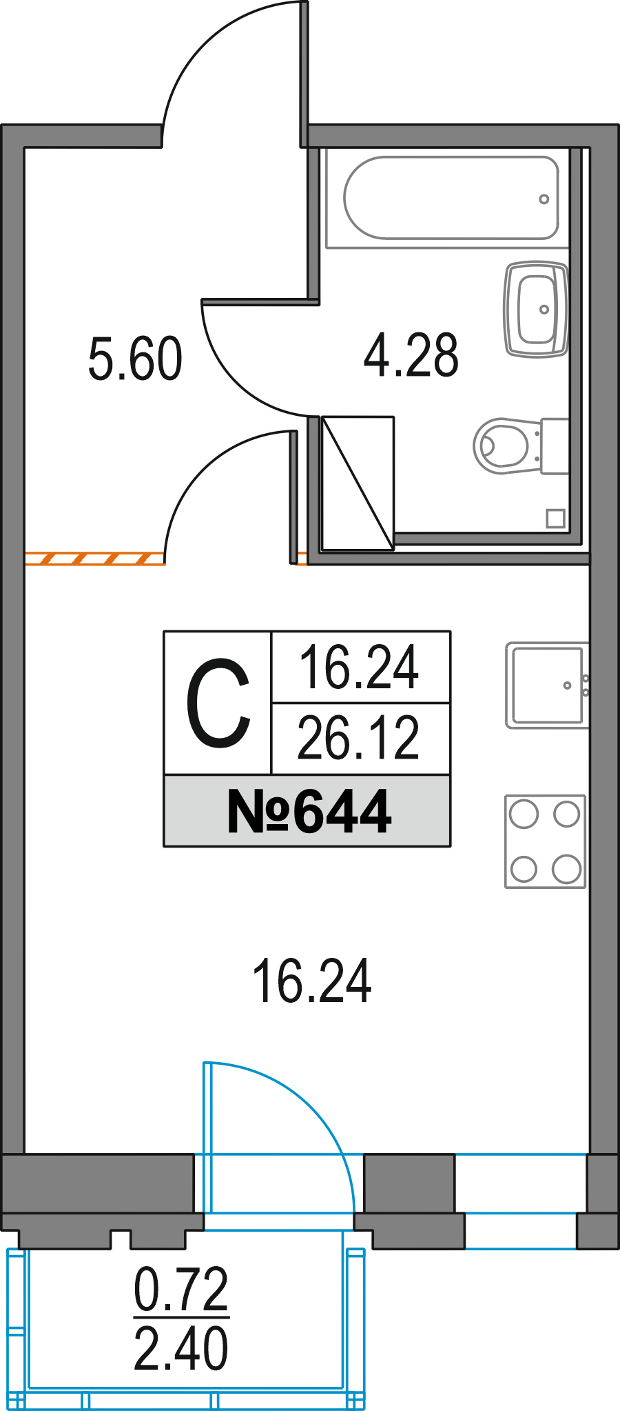 Однокомнатные квартиры (4 квартиры, 2 планировки)