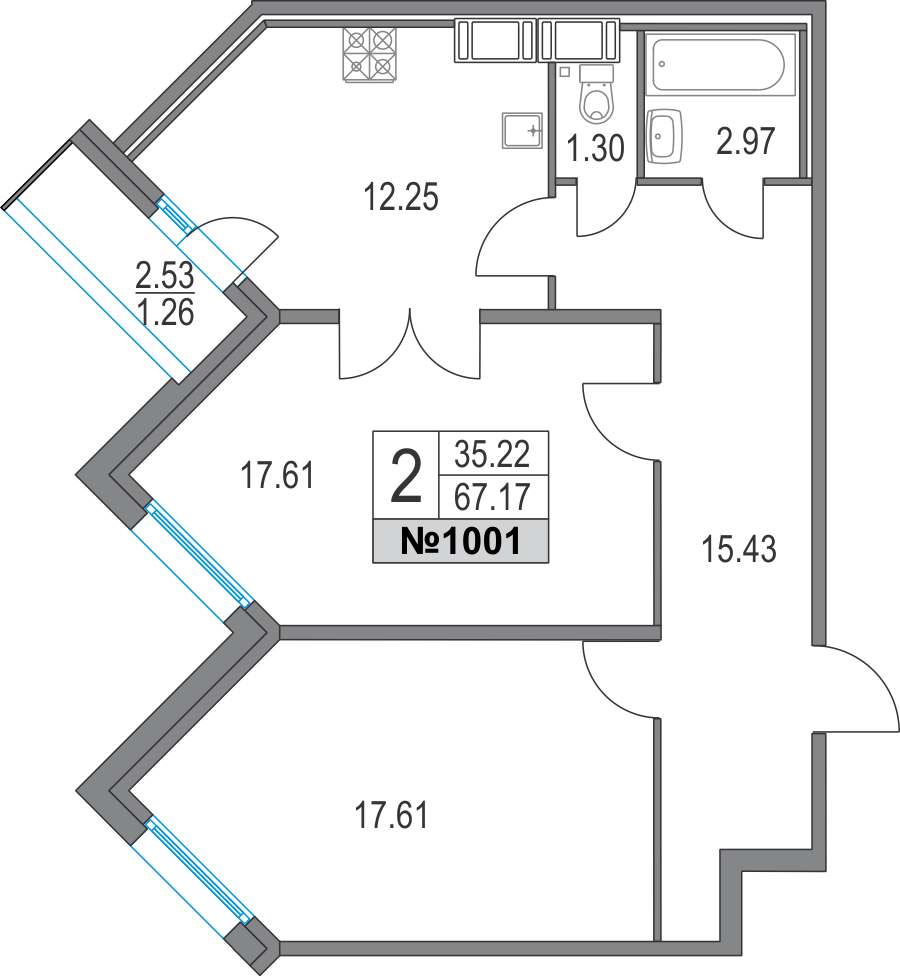 Двухкомнатные квартиры (15 квартир, 11 планировок)