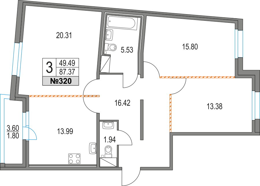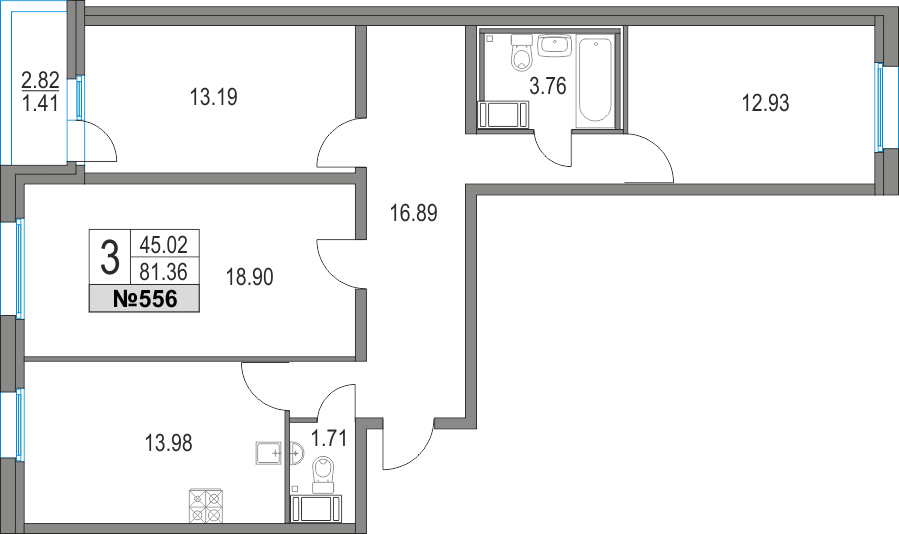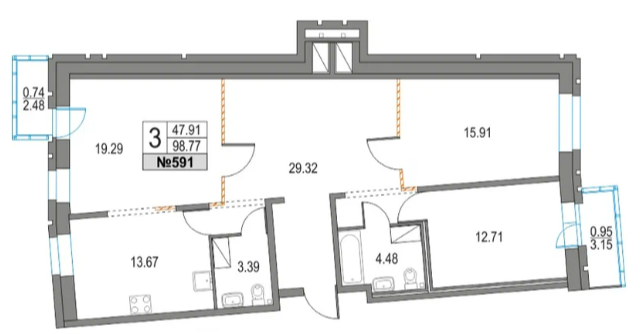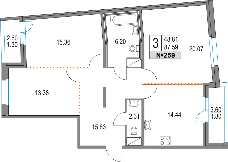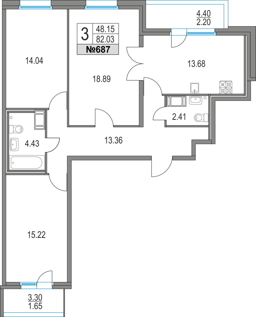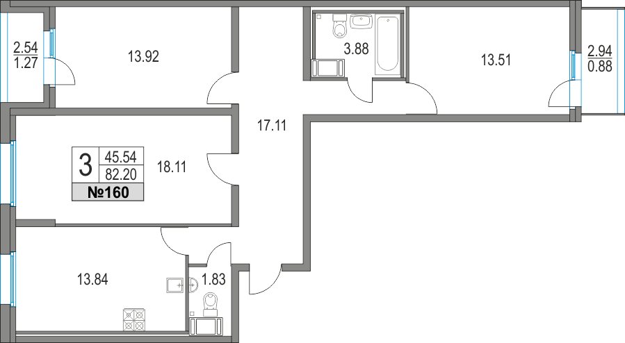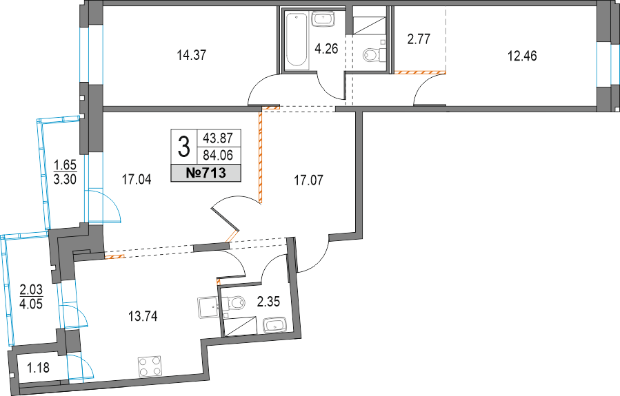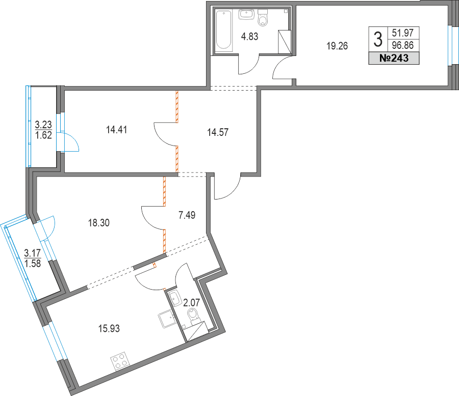Трехкомнатные квартиры (22 квартиры, 17 планировок)
