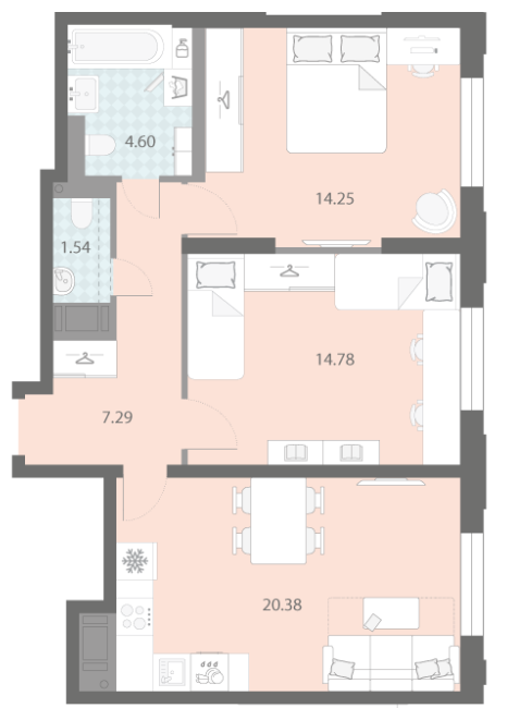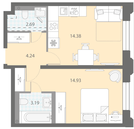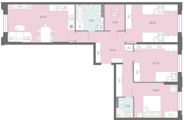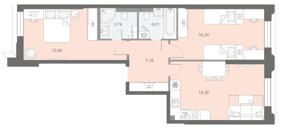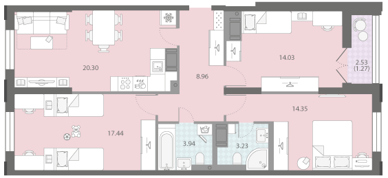 В новостройке предложены одно-четырехкомнатные квартиры с панорамными окнами и эркерами. Высота потолков на типовом этаже 2,84 метра, а на последних достигает 3,15 м. Часть жилья с кухнями-гостиными.