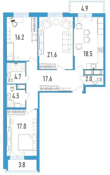 В новостройке 118 квартир. Предложены трех- и четырехкомнатные планировки, часть из них с террасами. Отделка не проводится.
